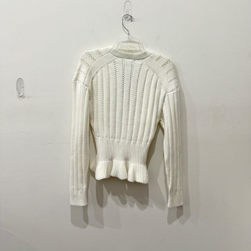 Jason Wu V-Neck Buttoned Long Sleeve Peplum Cardigan Sweater White Women's Small