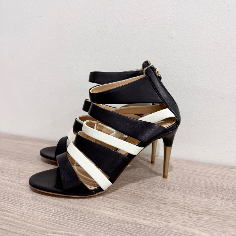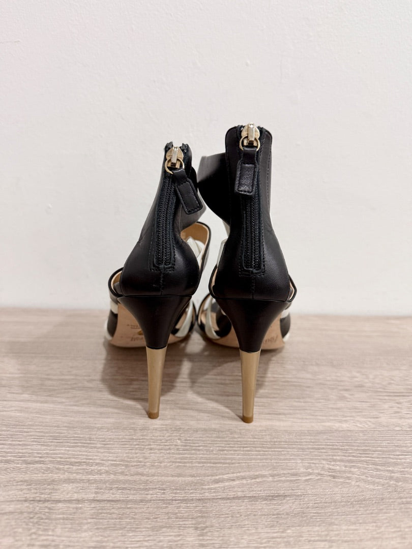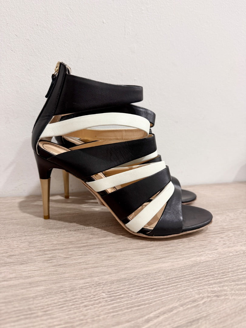 NWOT Jerome Rousseau Topanga Bi-Color Leather Gold Heel Caged Booties EU 37.5