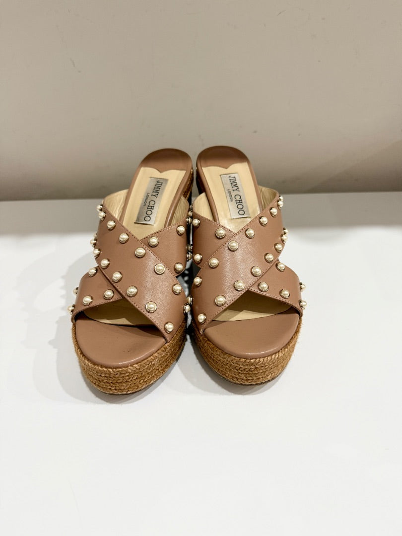 Jimmy Choo Dovina 100 Espadrille Wedge Platform Slide Sandals Beige Womens EU 39