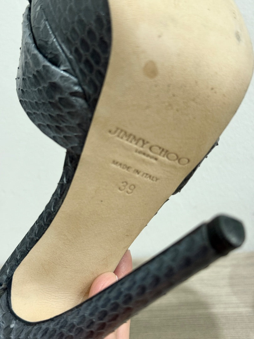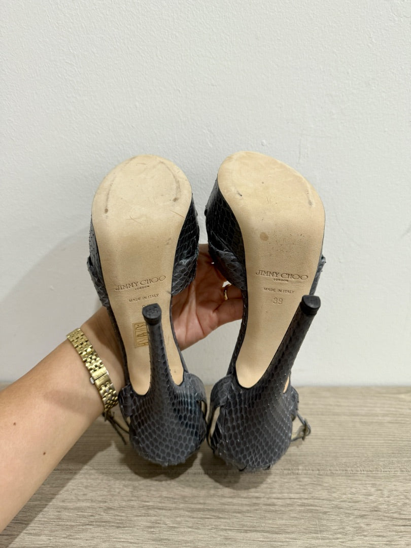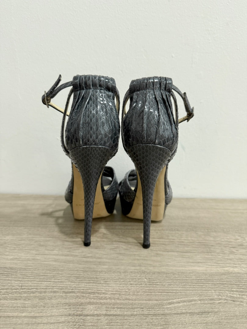 NWOT Jimmy Choo Greta Embossed Snake Ankle Strap Platform Sandals Grey Size 39/9