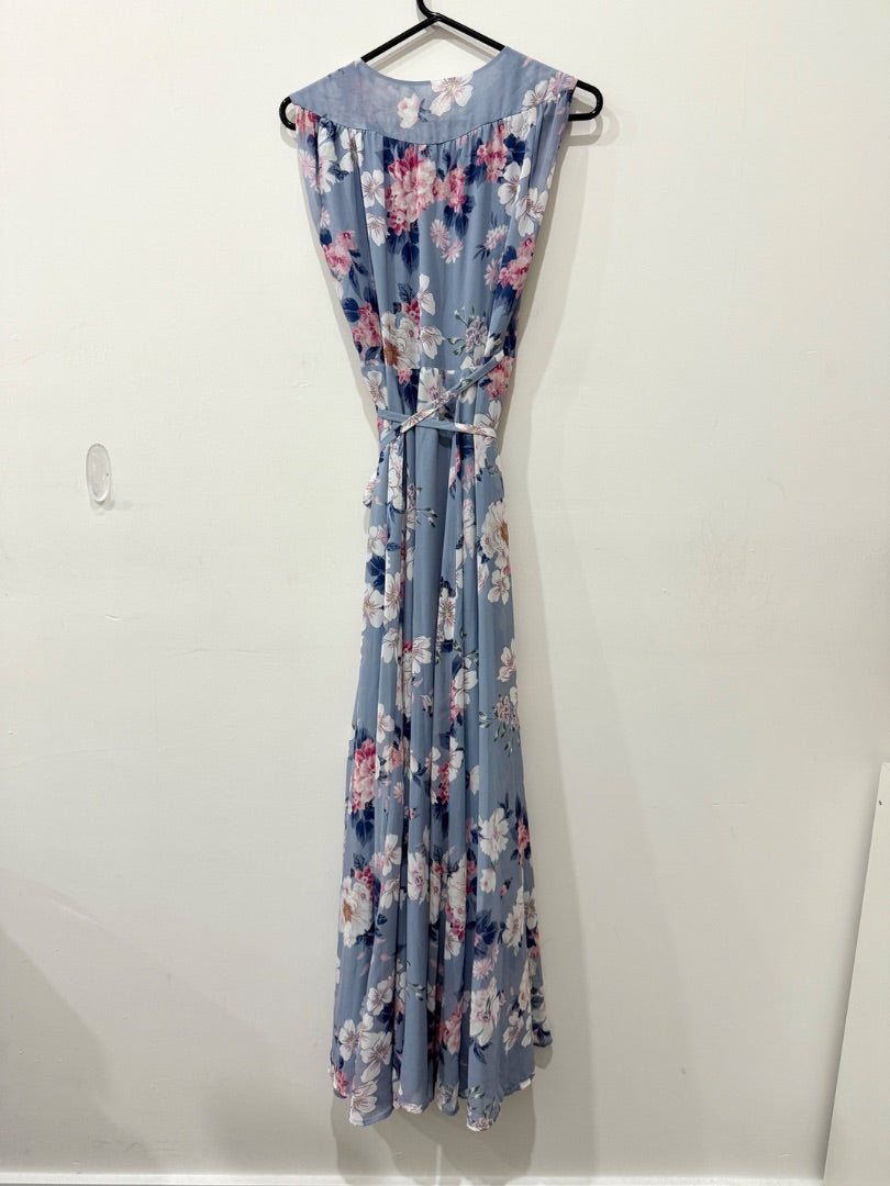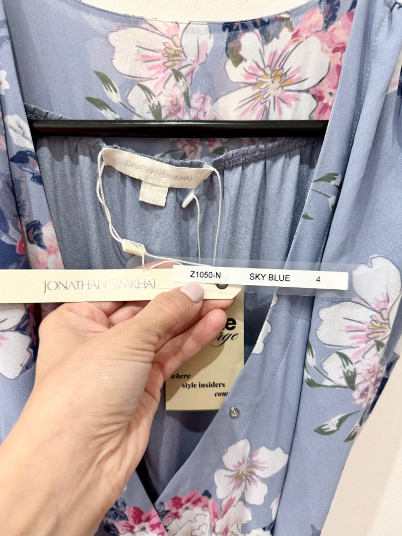 NWT Jonathan Simkhai Floral Sleeveless Slit Wrap Maxi Dress Sky Blue Womens 4