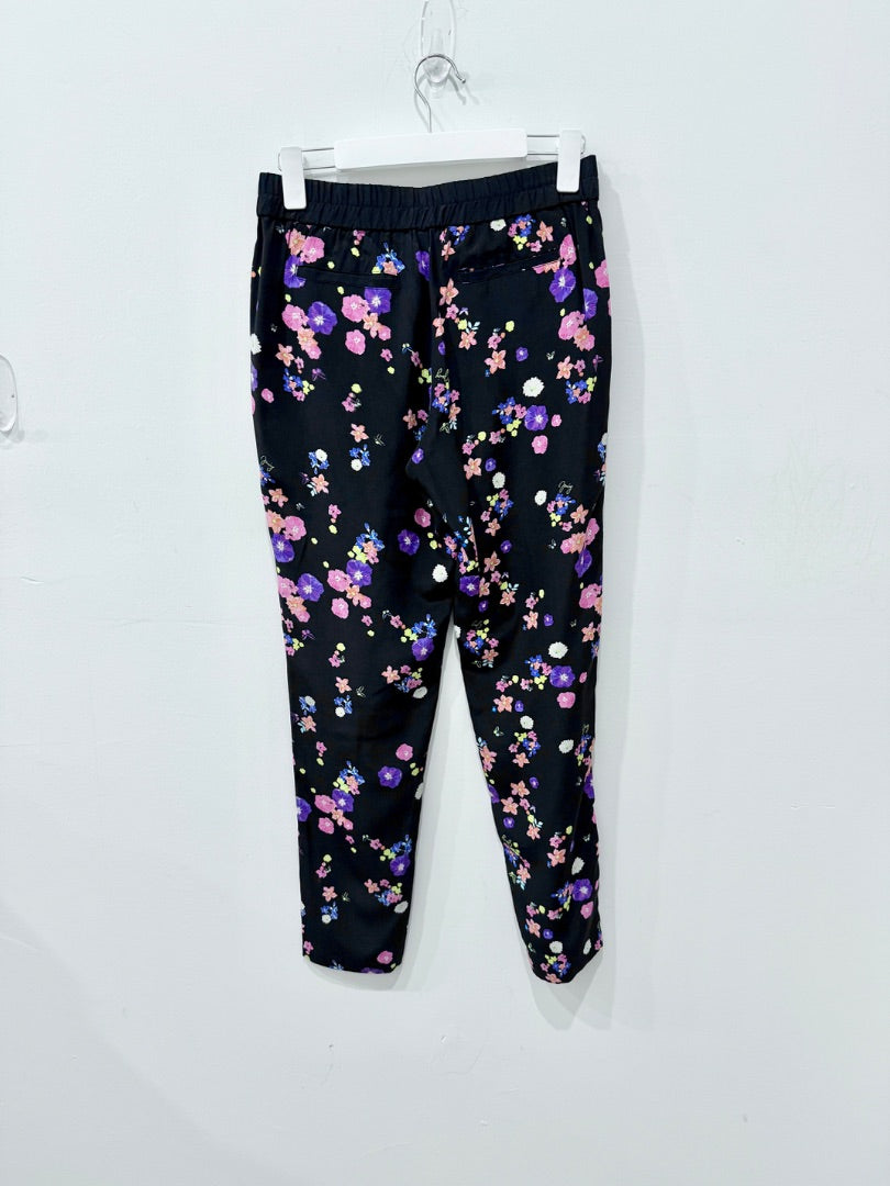Juicy Couture Floral Print Mid Rise Slim Silk Jogger Pants Black Multi Womens XS