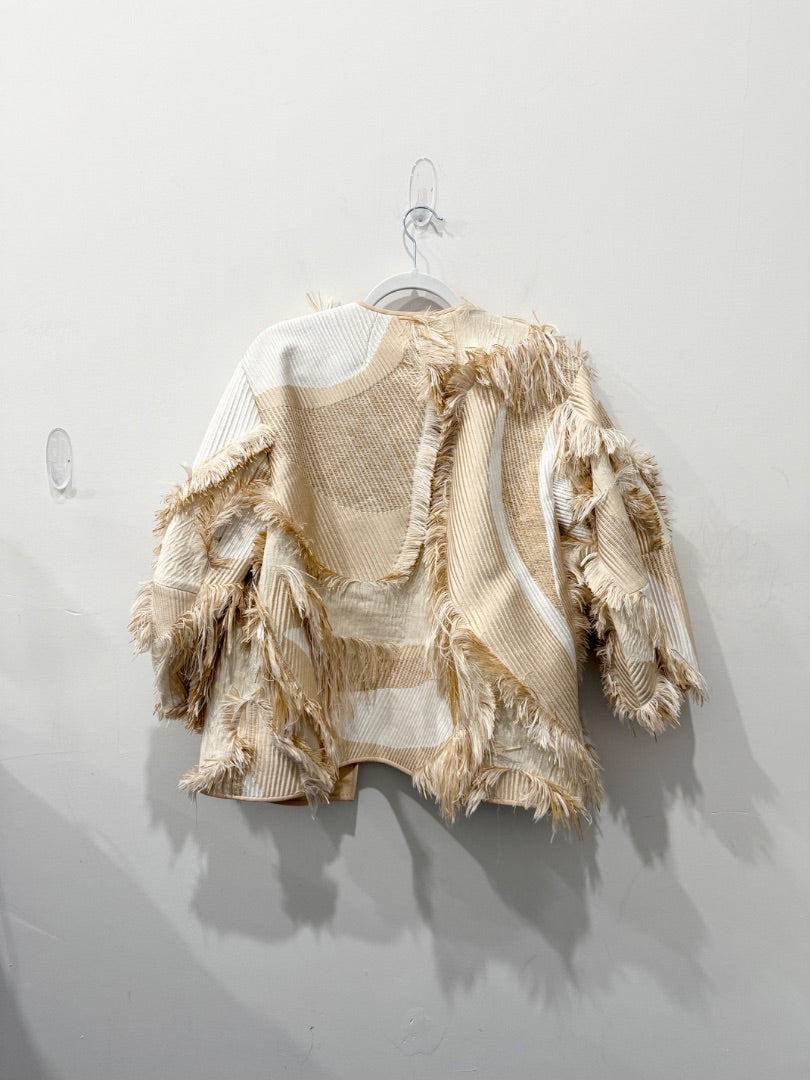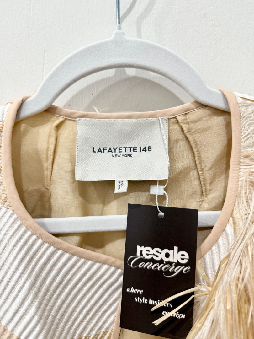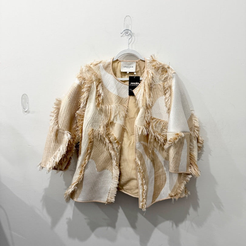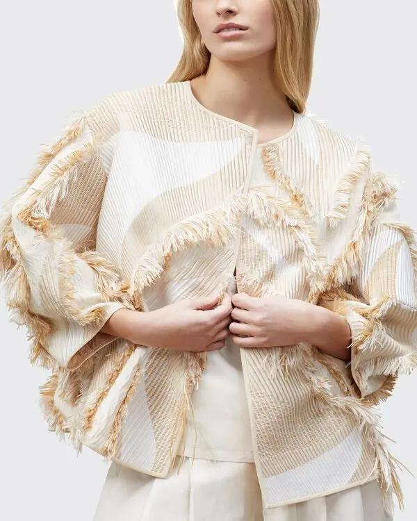Lafayette 148 Tellar Lantern-Sleeve Oversized Fringe Jacket Cloud Multi Small