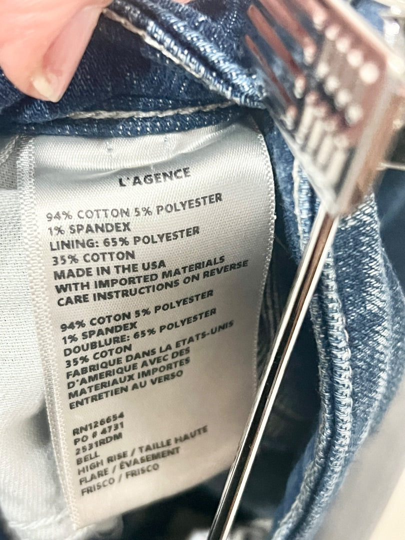 L'Agence Bell High Rise Whiskered Denim Flare Jeans Frisco Women's Size 31