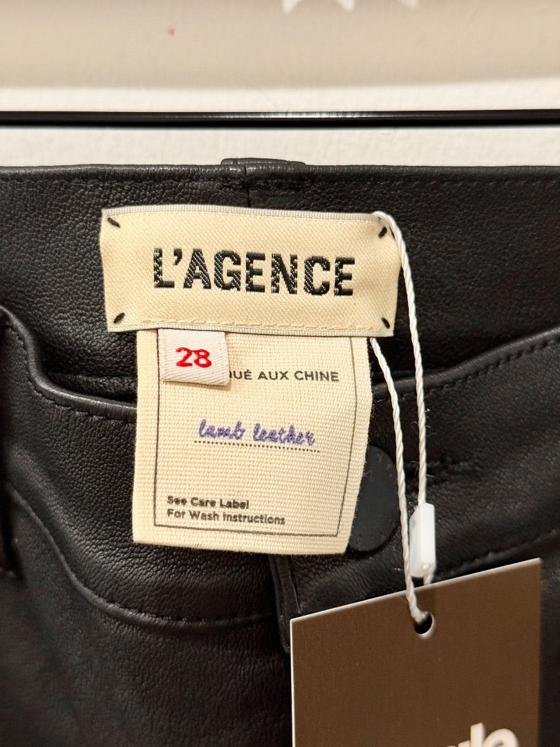 L'Agence Lamb Leather Mid-Rise Skinny Cropped Pants Black Women's Size 28 / 6
