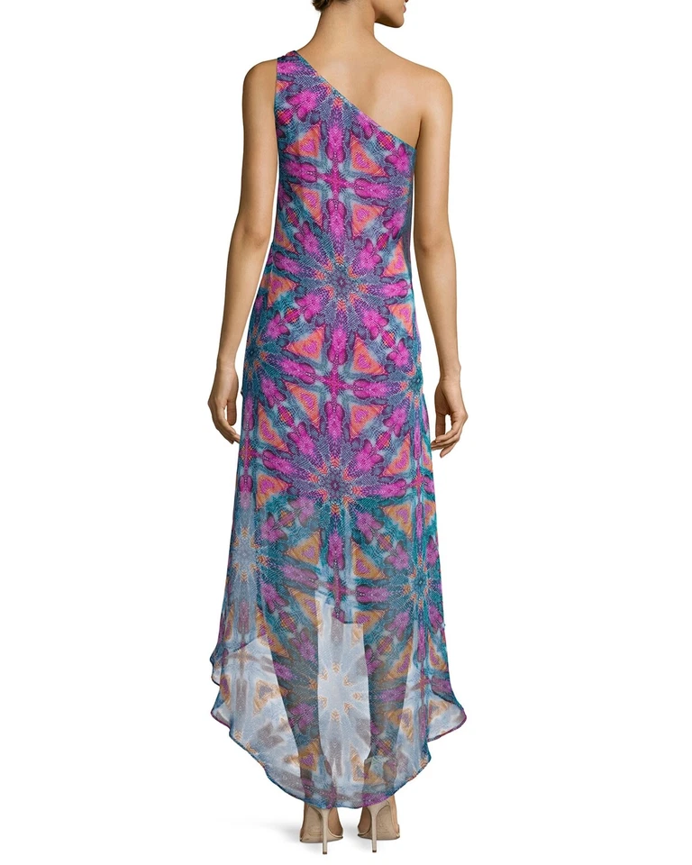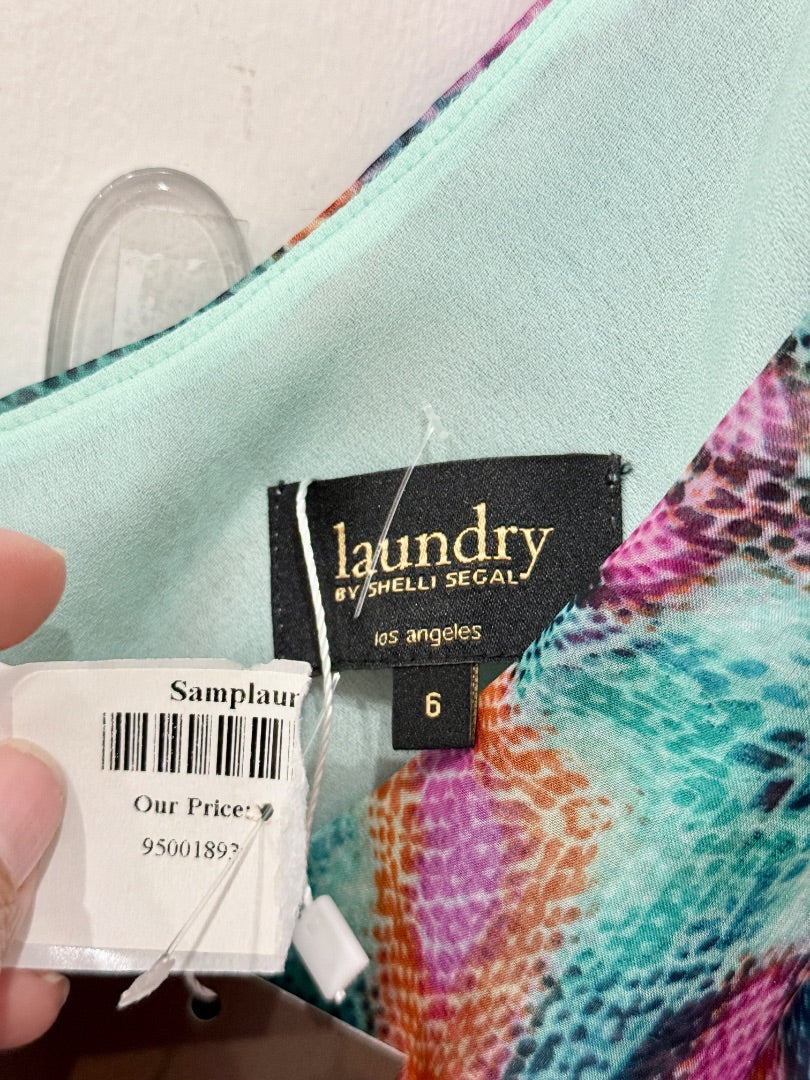 NWT Laundry By Shelli Segal One Shoulder High Low A-Line Dress Green/Purple 6