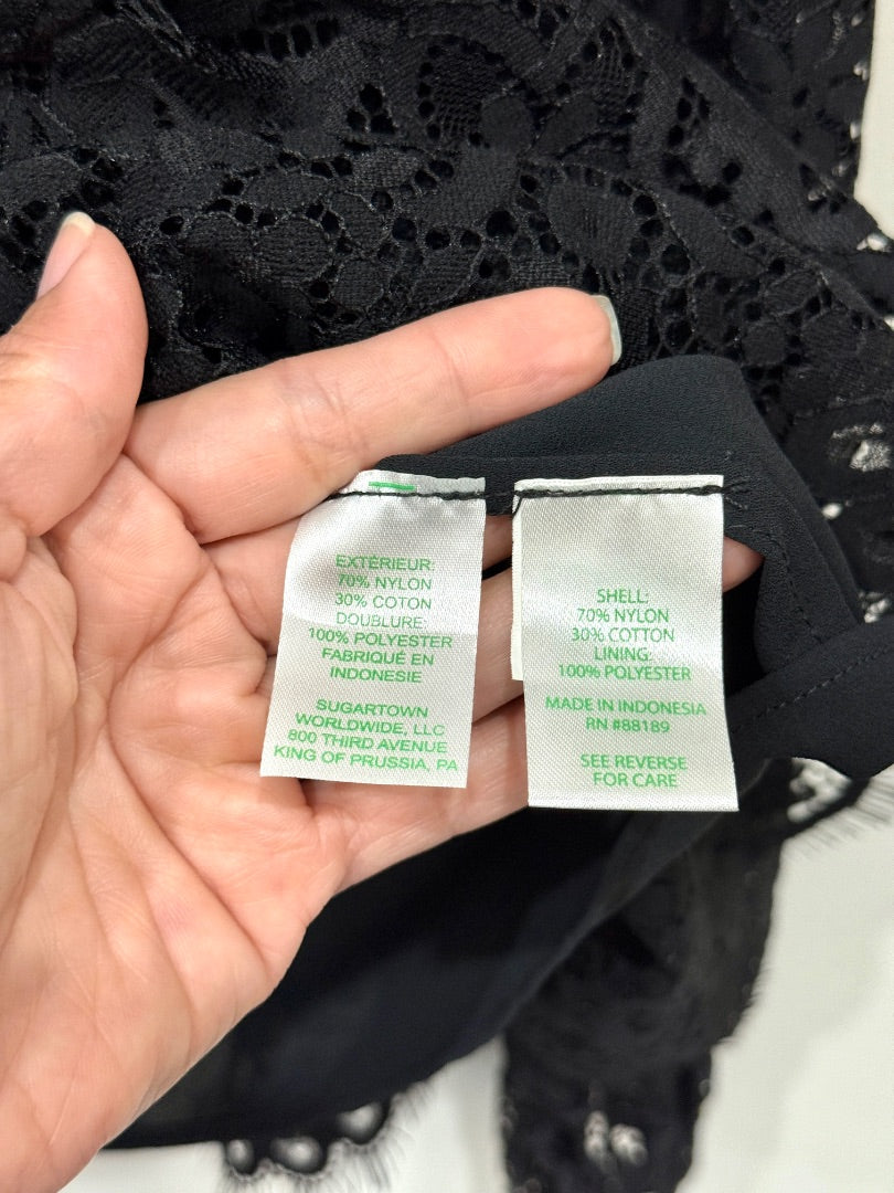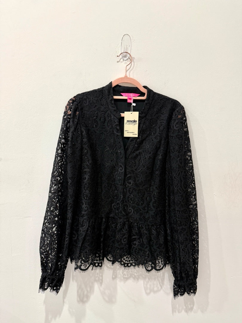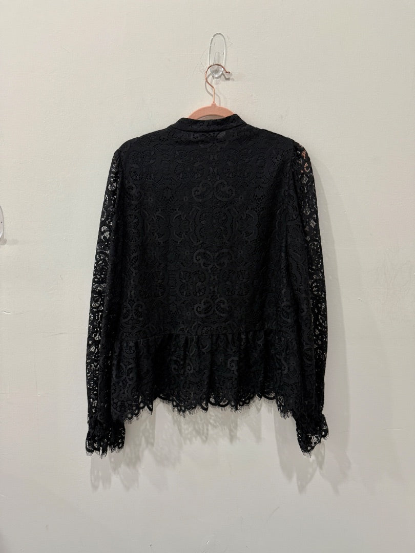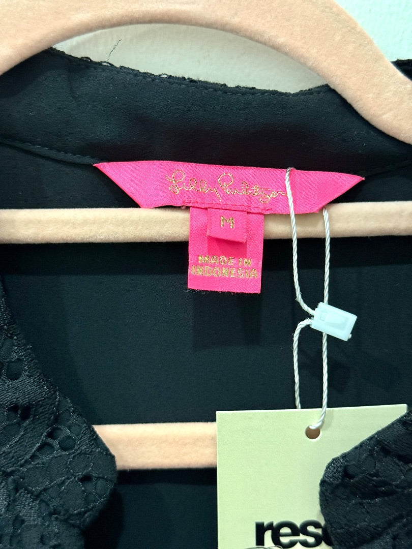 Lilly Pulitzer Jacelynn Long Sleeve Delicate Lace Blouse Black Women's Size M