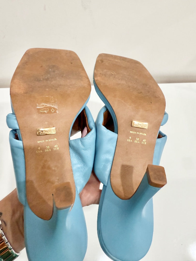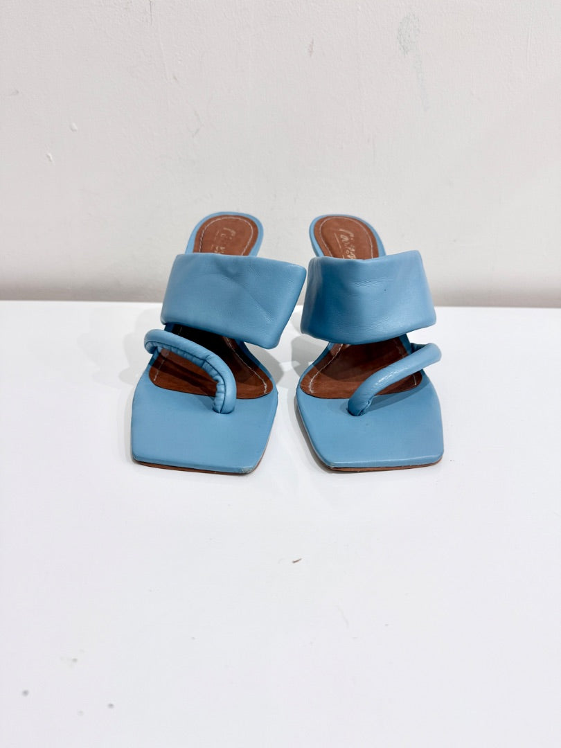 L'INTERVALLE Leather Thong Square Toe Stiletto Heels Jet Blue Women's Size US 9