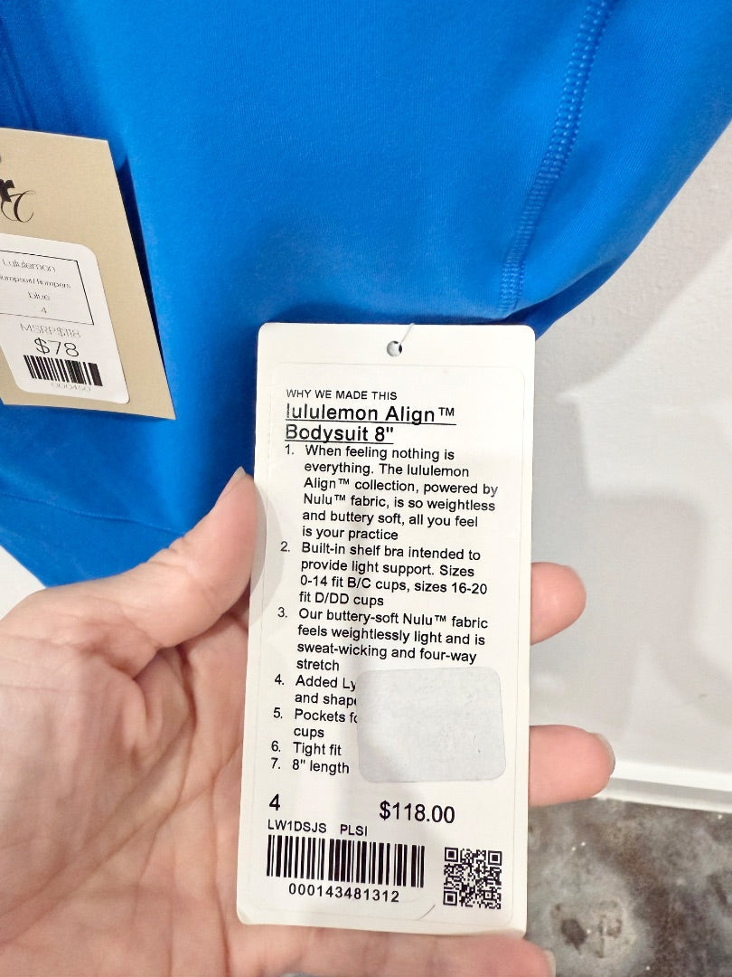 NWT Lululemon Align Romper Bodysuit 8" Built-In Shelf Bra Poolside Women's Size 4