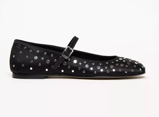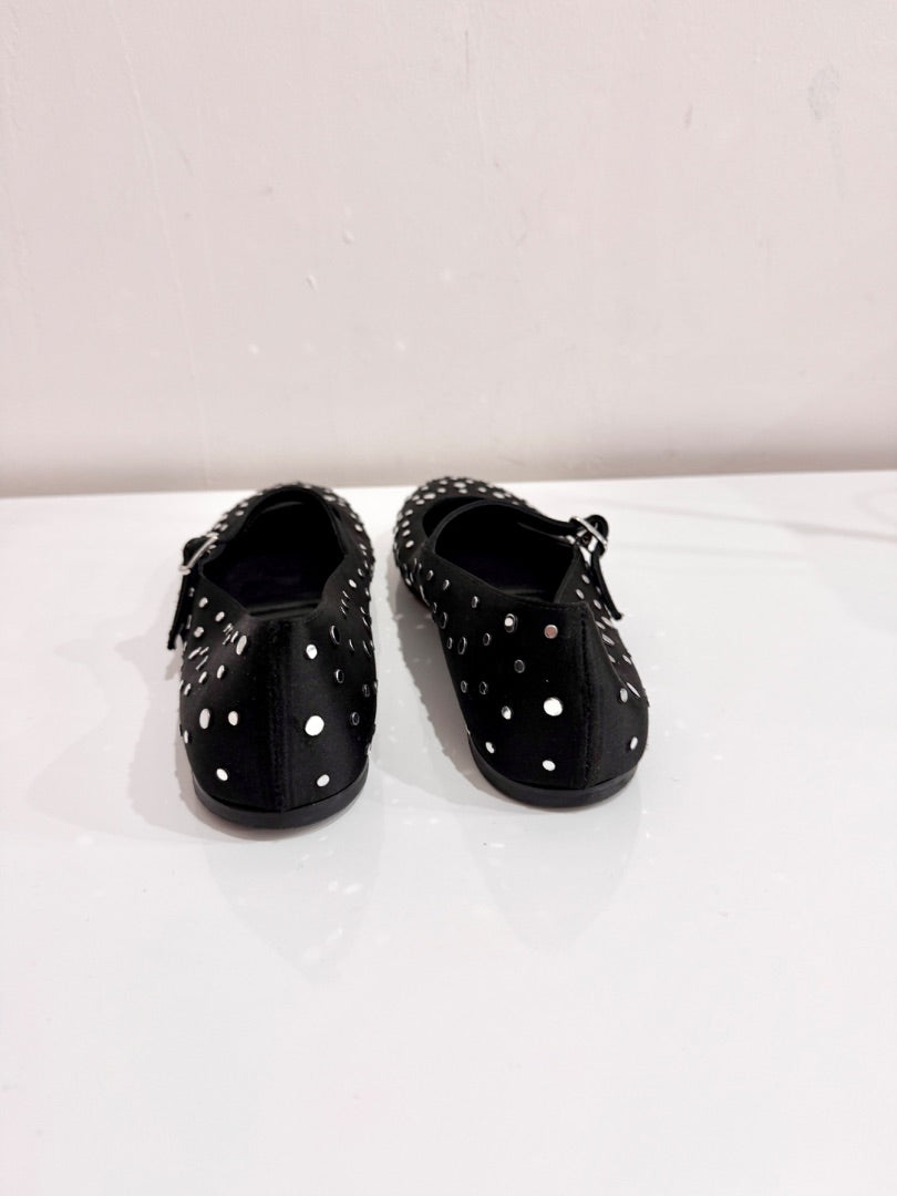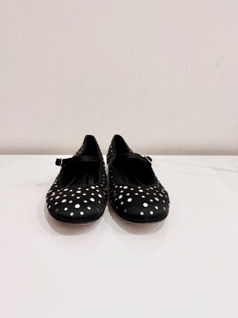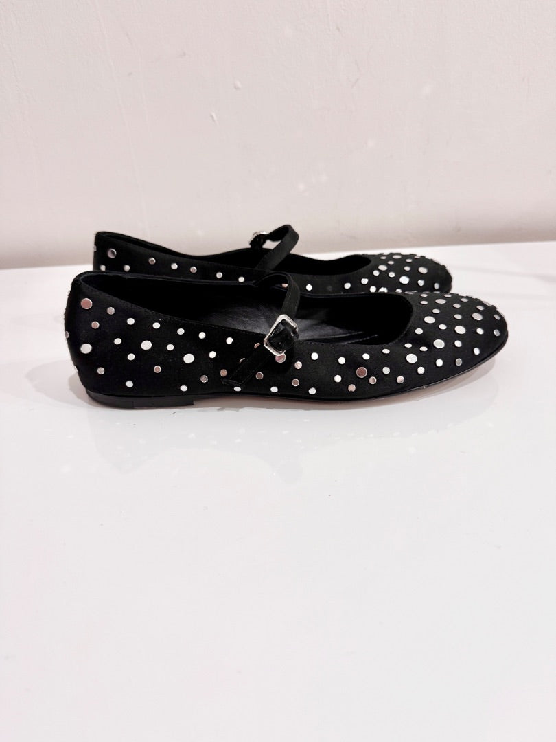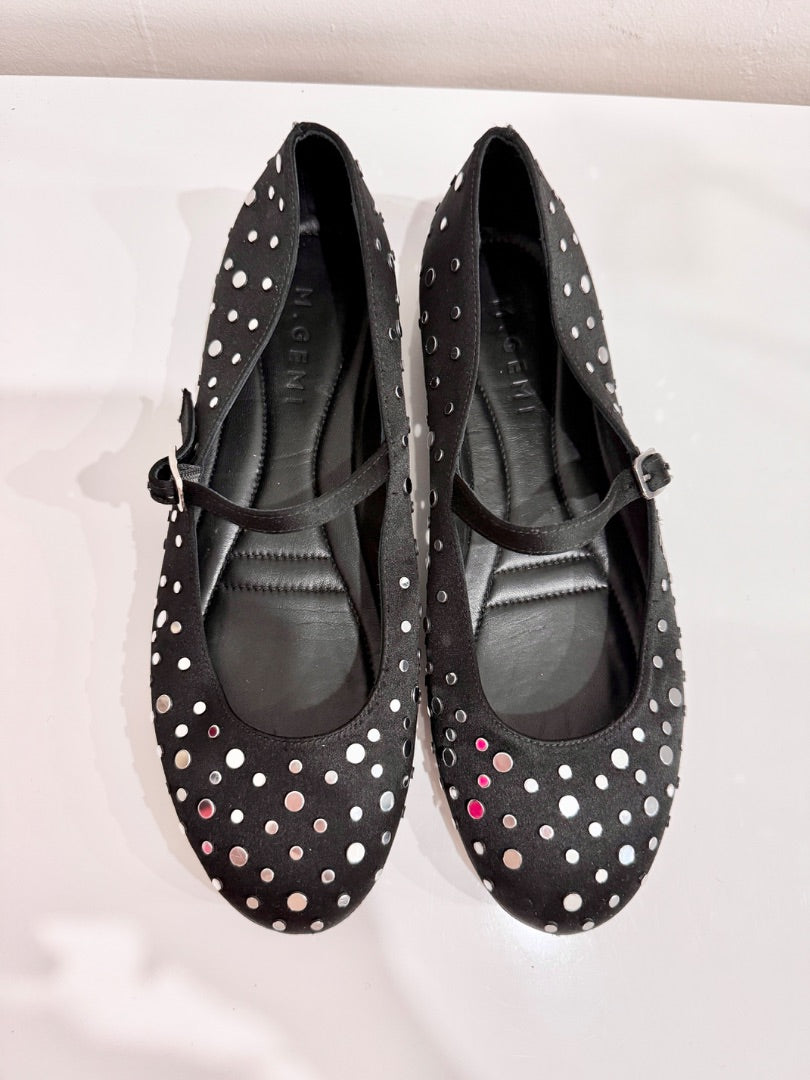 M. Gemi The Anastasia Metal Stud Satin Ballerina Flats Black Women's Size 40/9