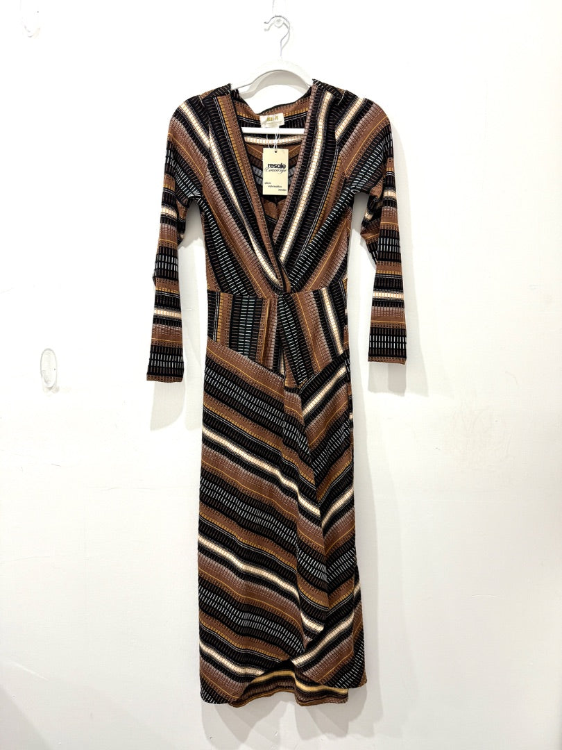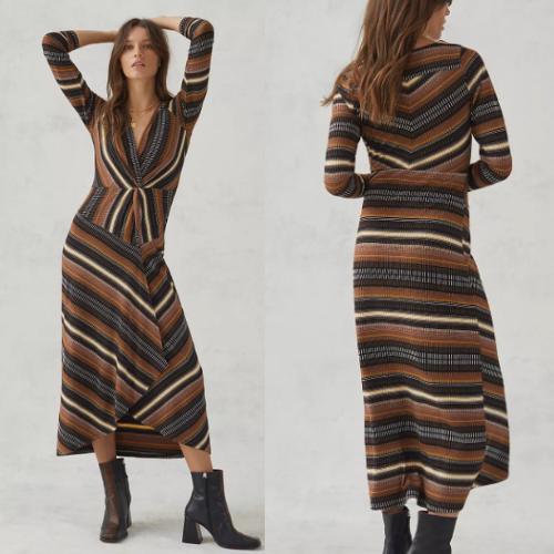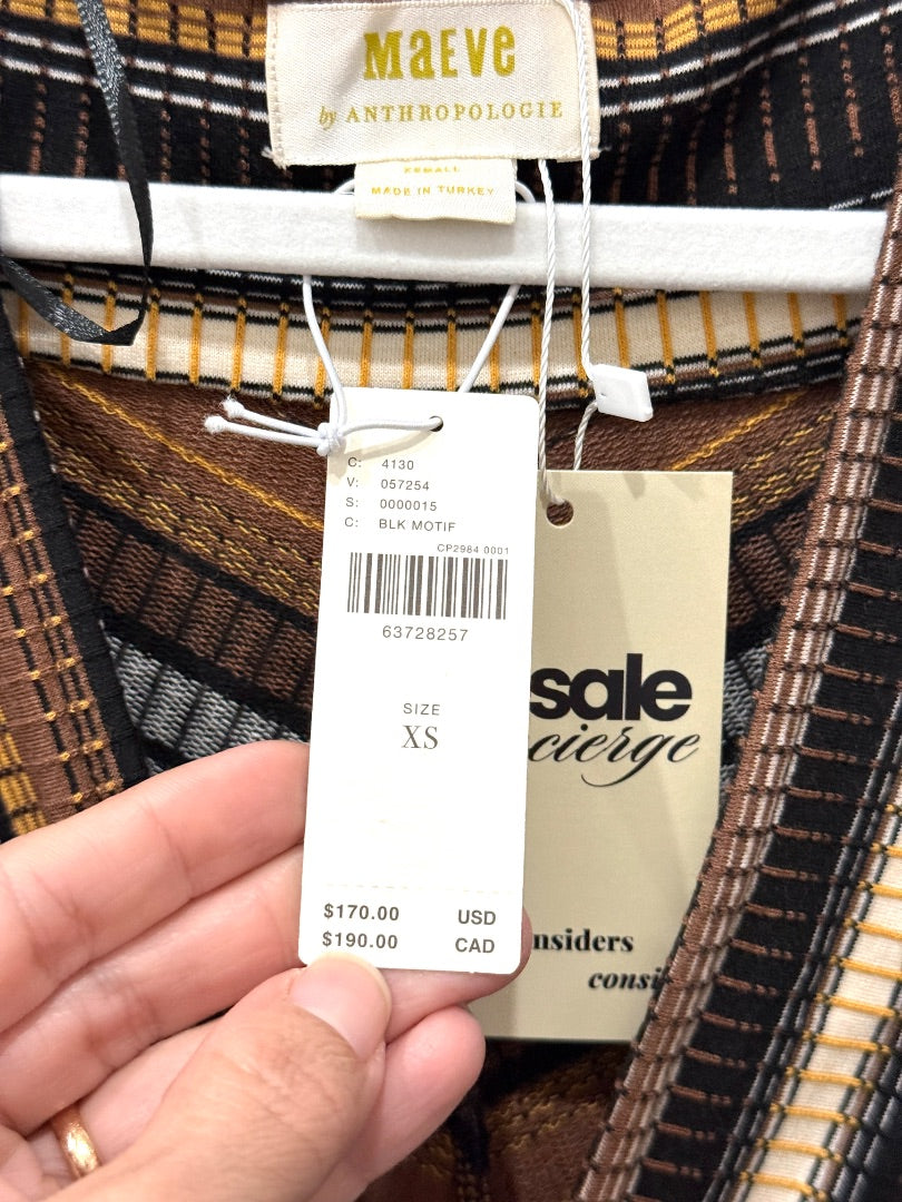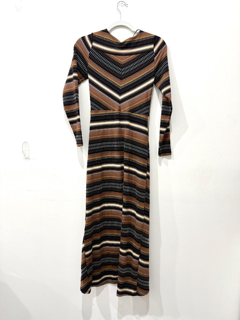 NWT Maeve by Anthropologie Striped Wrap Midi Dress Brown Multi Women's Size XS