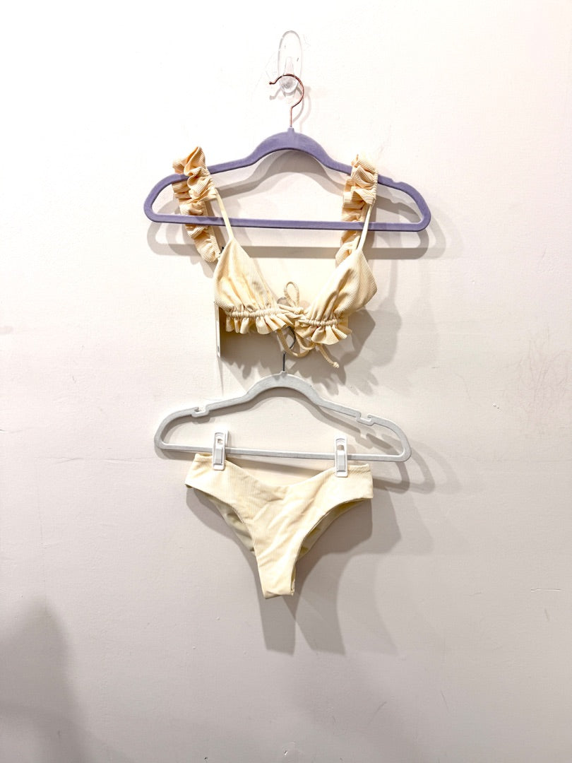 Maheli Heli Ria Ruffle Bikini Top & Bekka Bikini Bottom Swim Set Ribbed Vanilla S
