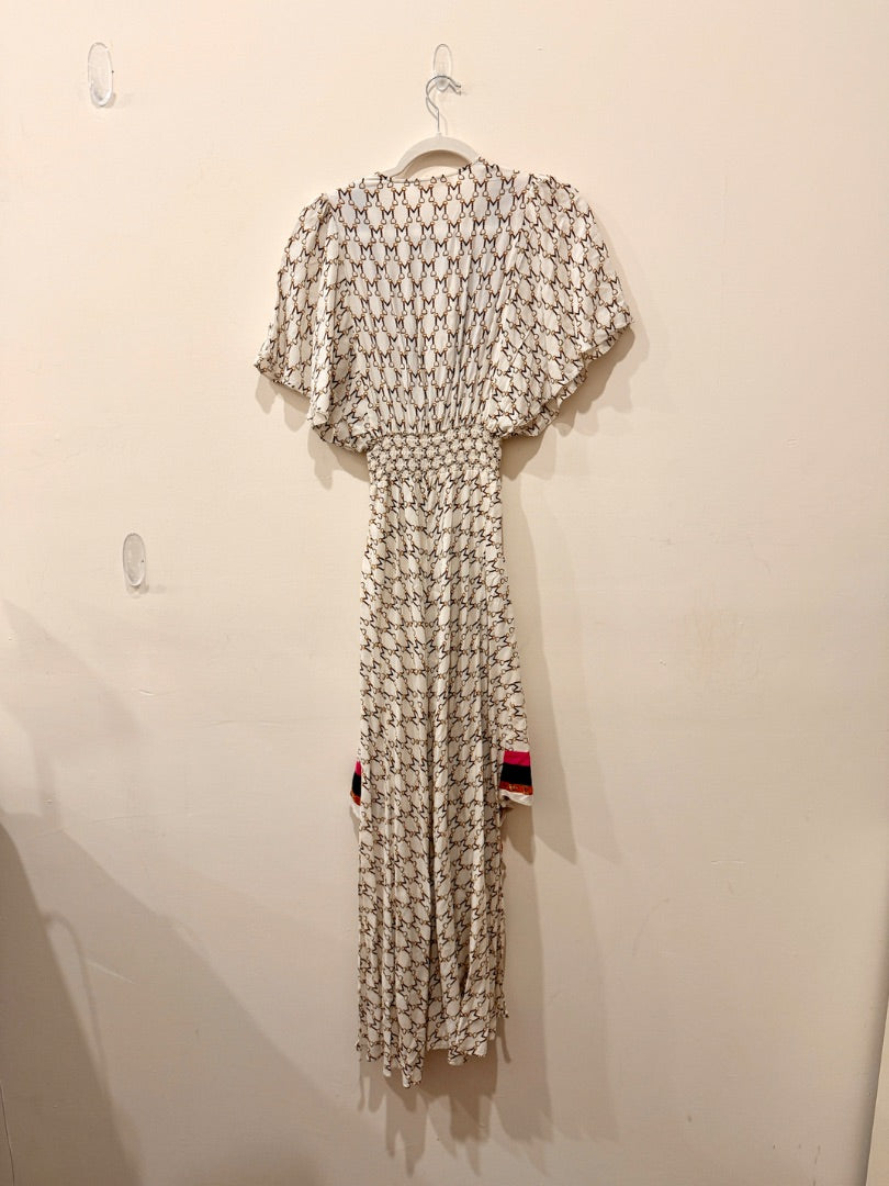 Maje Shirred Printed Crepe De Chine Maxi Dress White Multi Women's 36 FR / 4 US