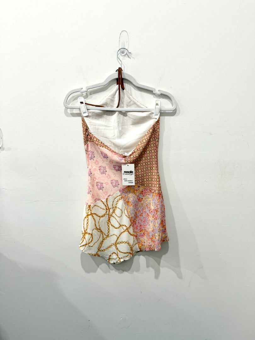 NWT Majorelle Carrie Satin Patchwork Halter Neck Mini Dress Gold/Pink Women's XS