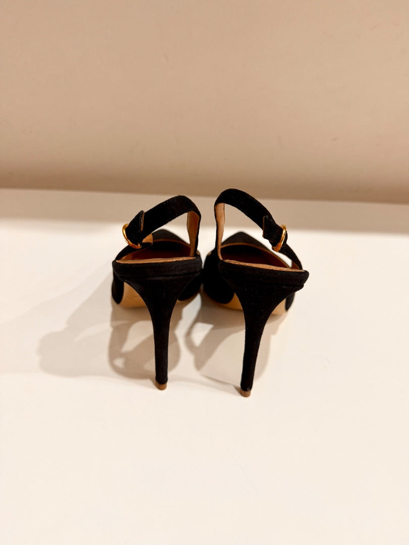 NWT Mansur Gavriel Suede Pointed Toe Classic Heel 100mm Slingback Black EU 37.5
