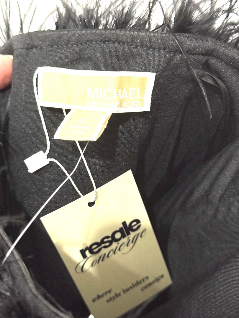 NWT Michael Kors Feather Embellished Crepe Strapless Tube Top Black Women's XS