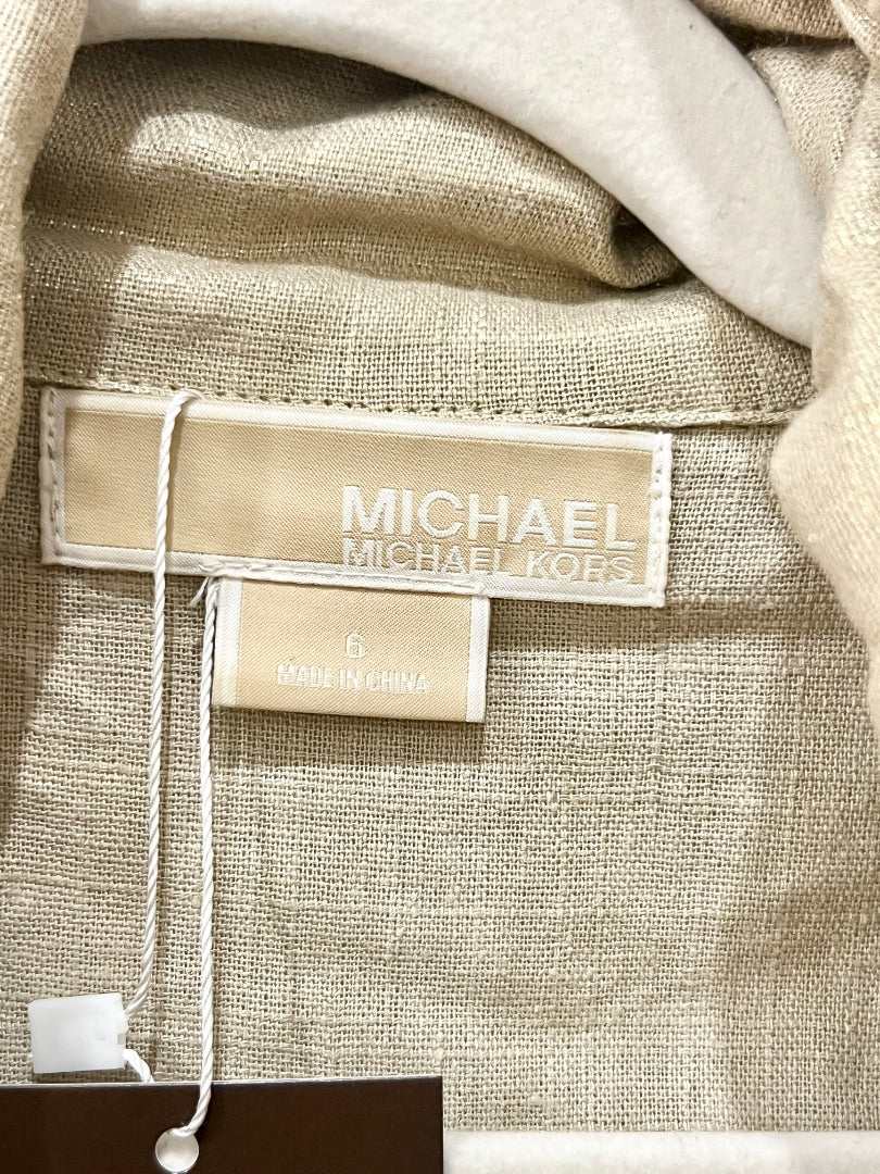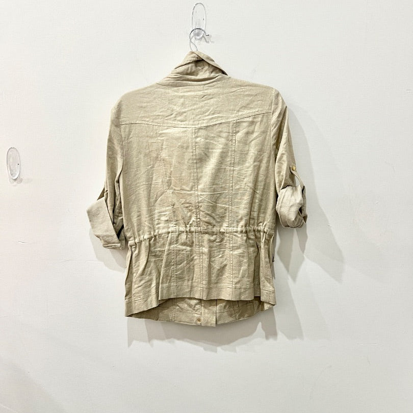Michael Kors Linen Blend Rolled Up Sleeve Metallic Utility Jacket Beige Womens S