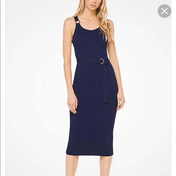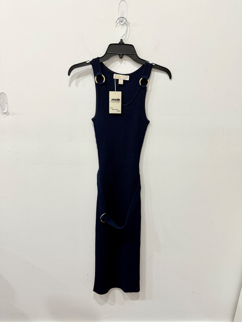 MICHAEL Michael Kors Sleeveless Belted Rib Midi Tank Sweater Dress Dark Blue XXS