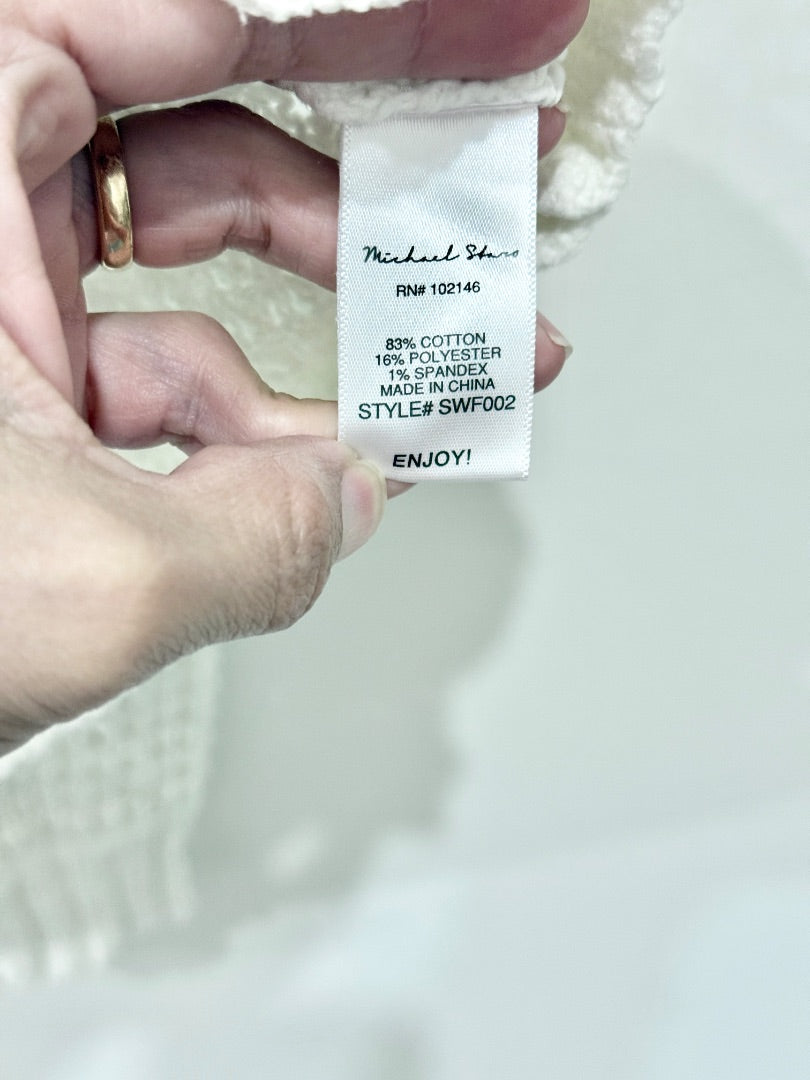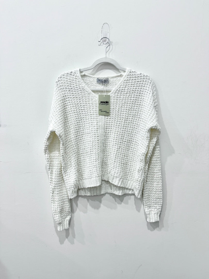 Michael Stars Kelsie Chunky Waffle Oversized V-Neck Sweater Ivory Womens Size XS