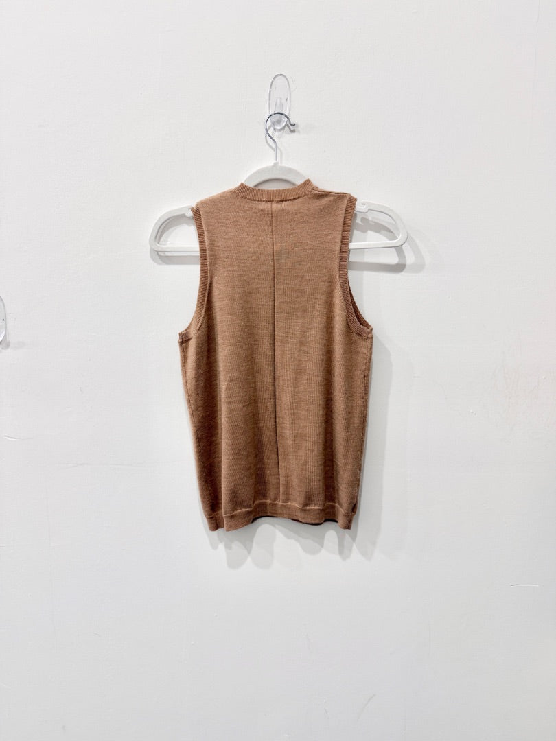 Minnie Rose Cashmere Crewneck Sleeveless Tank Top Cafe Beige Women's Size Medium