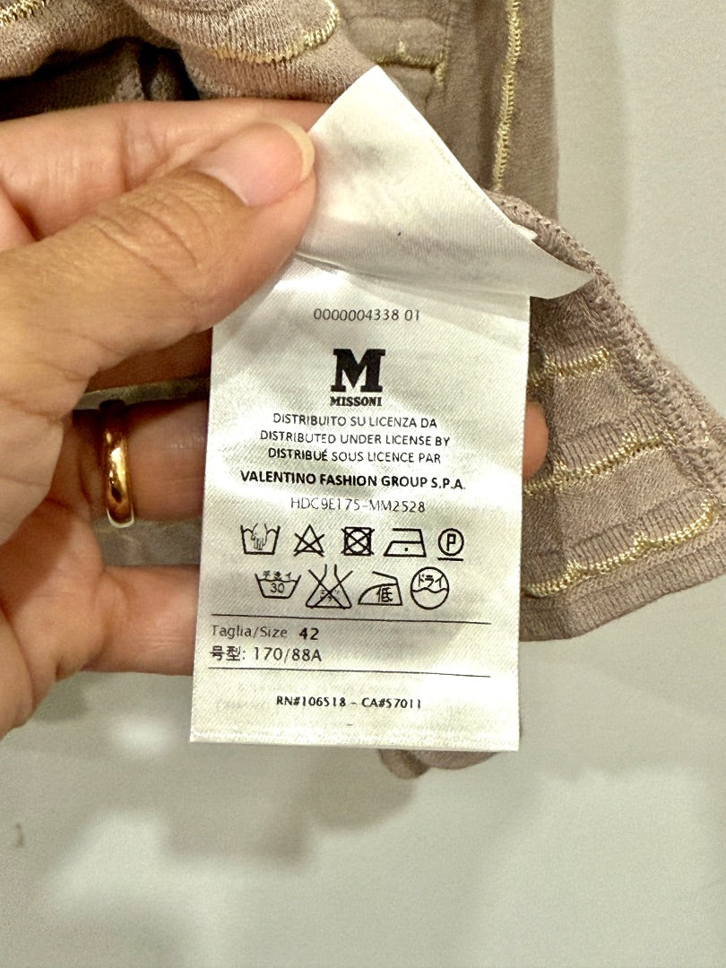 M Missoni High Waisted Ruffle Hem Mini Knit Skirt Beige Women's Size 42 IT / 6 US