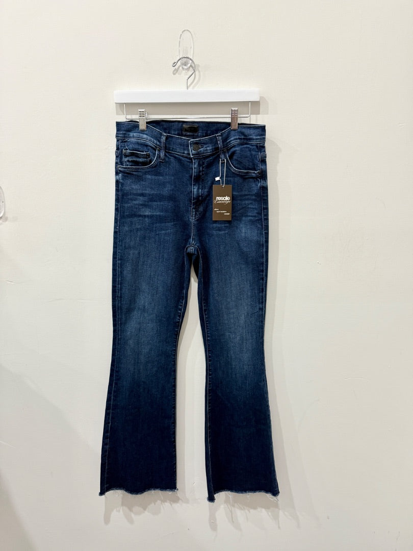 Mother Mid Rise Denim The Weekend Fray Flare Jeans Chip On My Shoulder Womens 29