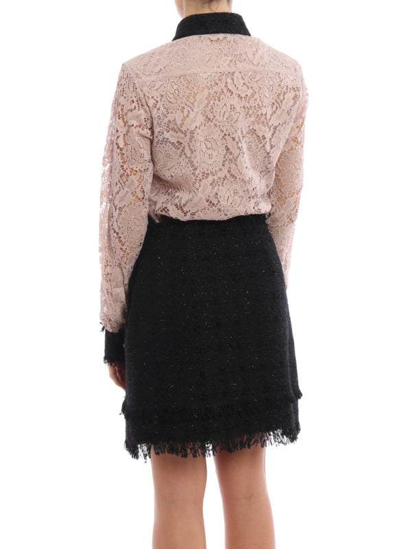 M.S.G.M. Lace and Boucle Tweed Mini Dress Blush Pink / Black Womens 42 IT / US 6