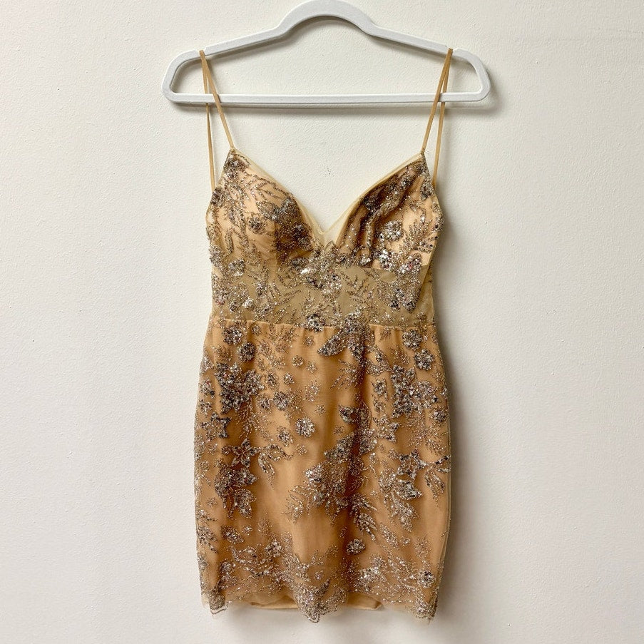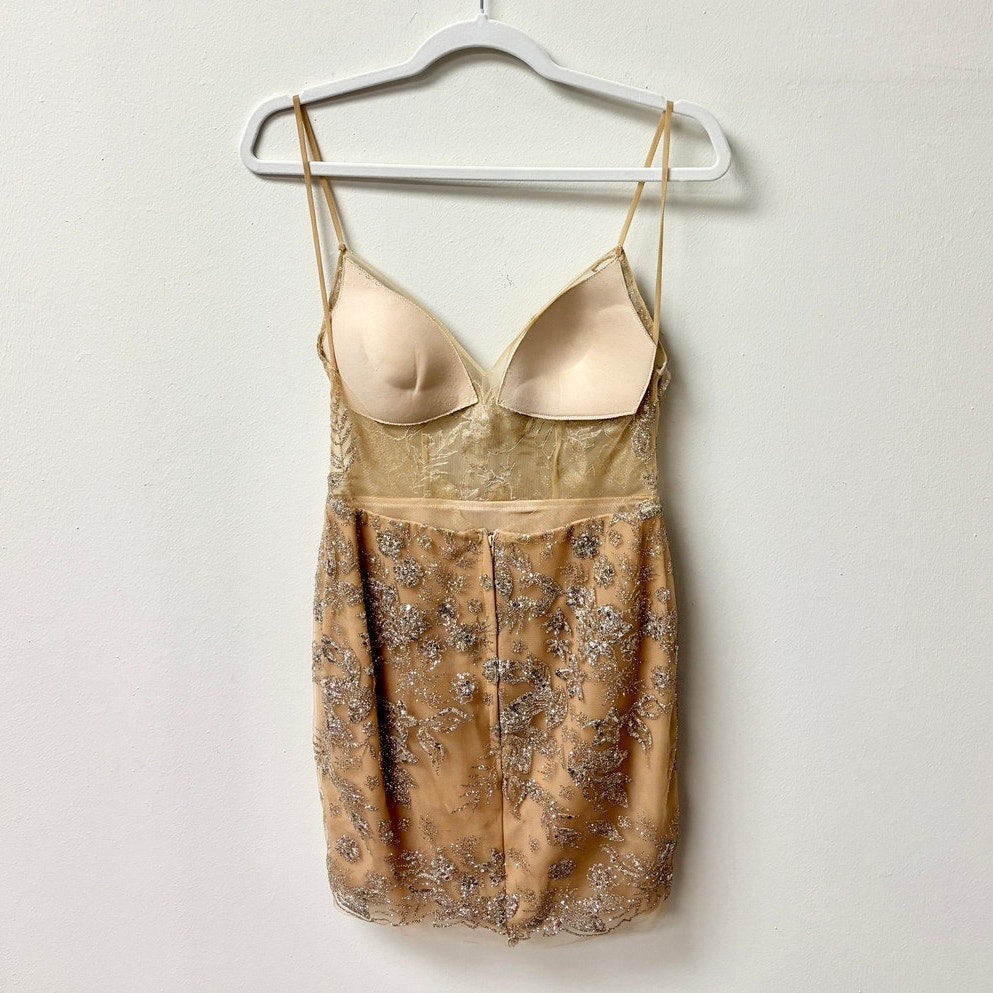 MUSE by Berta Embroidered Floral Sleeveless Padded Cocktail Mini Dress Gold 38 / 4