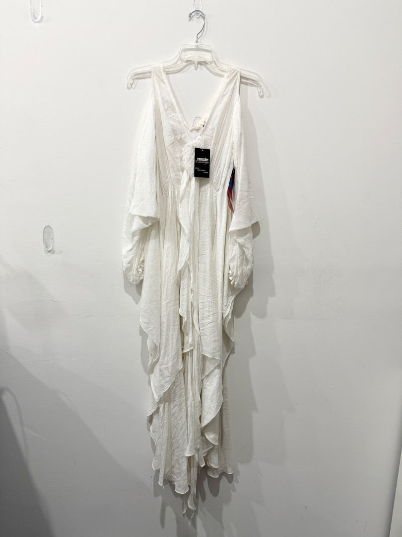 Elsa Cohen Embellished Sequins Cold Shoulder Cover-Up Maxi Dress White Women's M