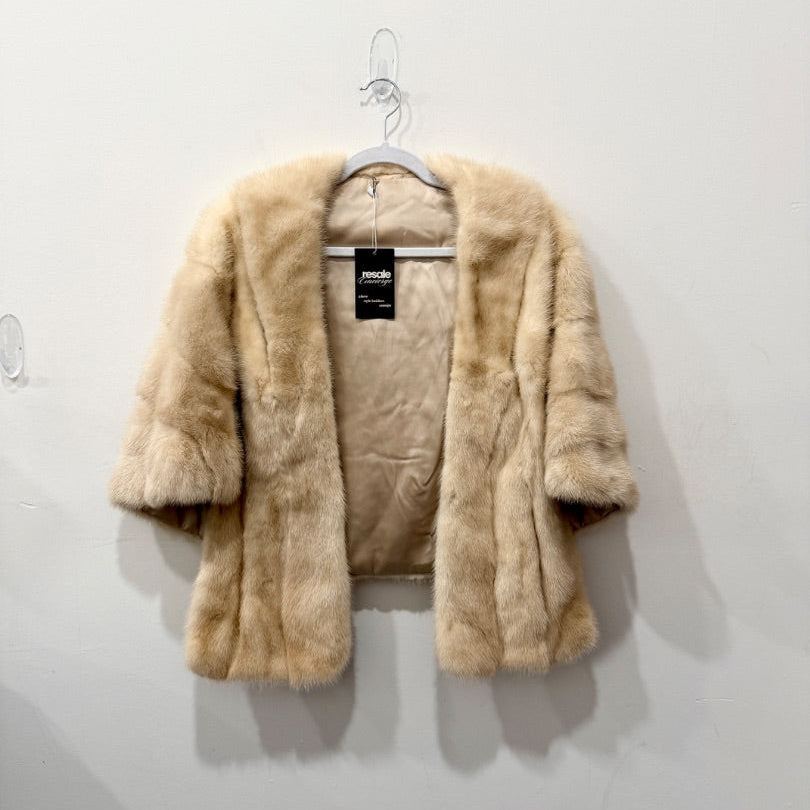 Vintage Wrap Mink Fur Short Stole with Shawl Collar Light Brown Women's One Size