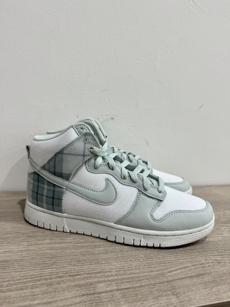 Nike Dunk High Retro Leather High Top Sneakers White/Mint Plaid Mens Size US 7.5