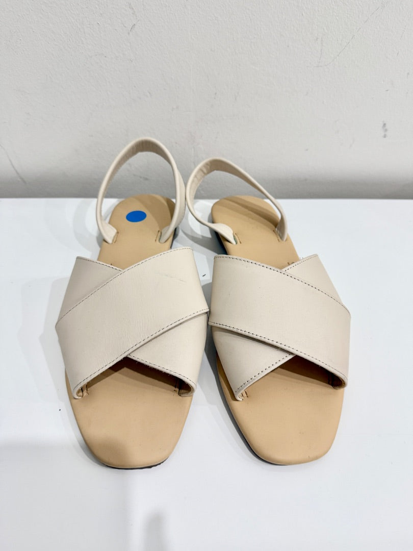 Nisolo All-Day Crossover Strap Leather Slip On Sandal Bone White Women's Size 10