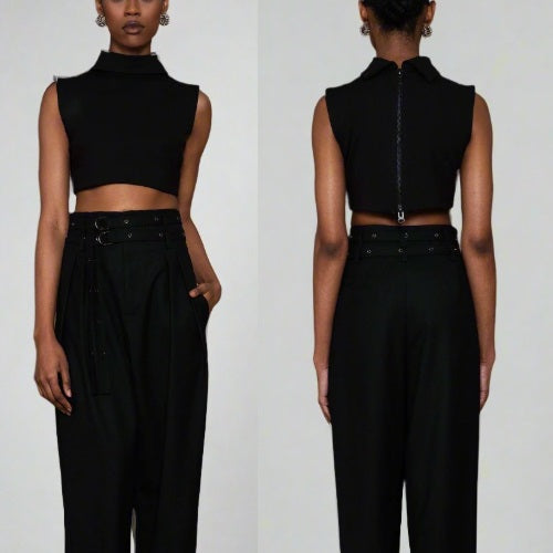 Nonchalant Label Ryland High Neck Full Zip Cropped Tank Top Black Womens Size XS