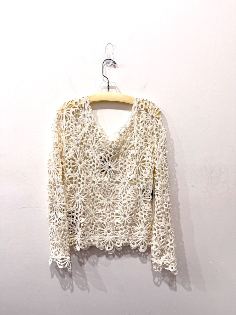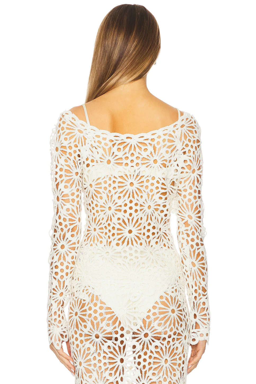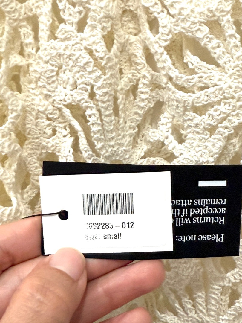 NWT Norma Kamali Off Shoulder Raglan Crochet Cover-Up Top Cream Women's Size S