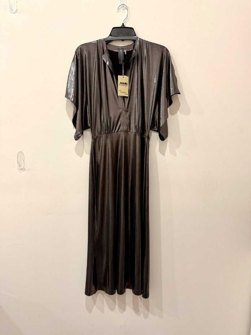 Norma Kamali Obie Split-Neck Lamé Midcalf Dress Metallic Bronze Womens Sze Small