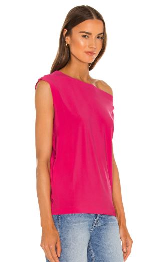 Norma Kamali Drop One-Shoulder Jersey Tank Top Fuchsia Pink Women's Size XS/34