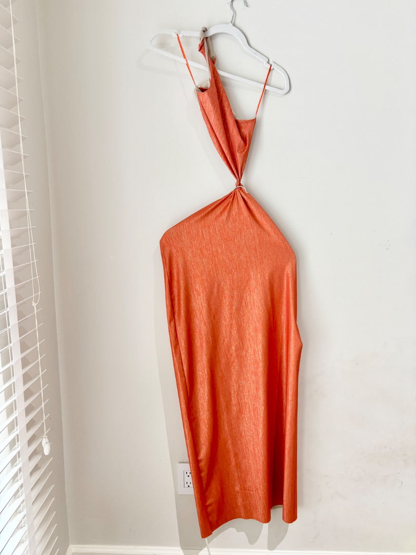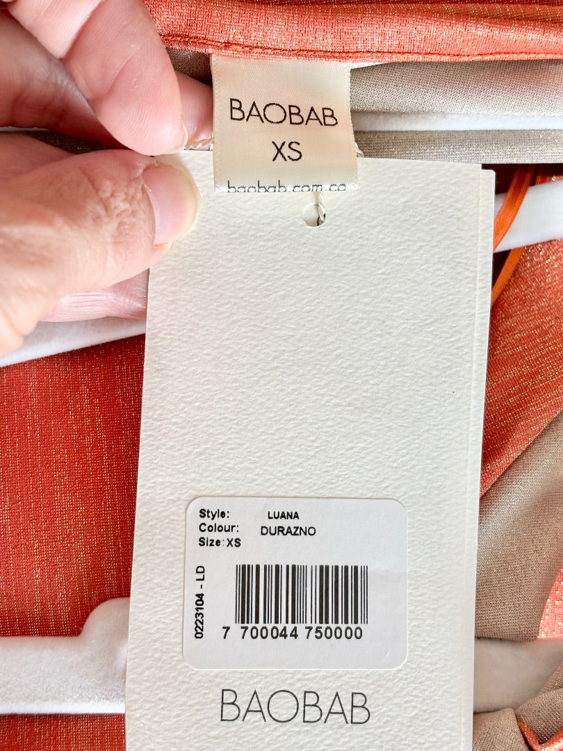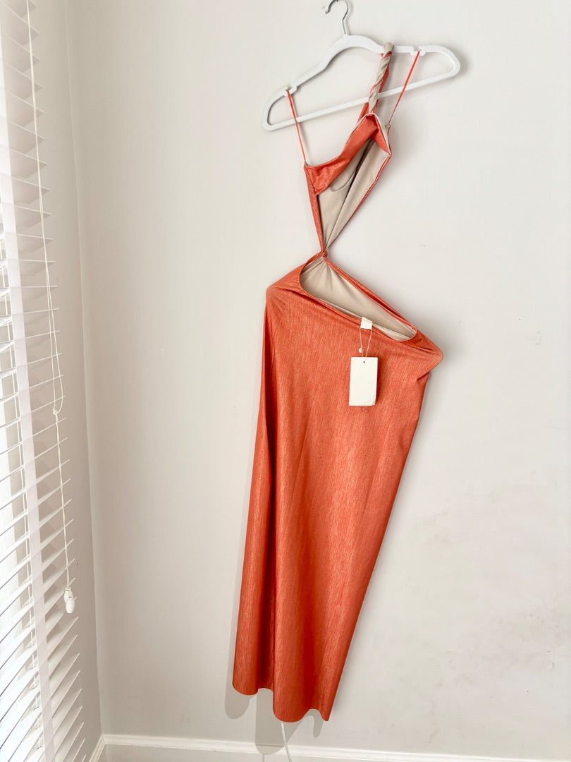 NWT Baobab Luana Lurex Cut Out One-Shoulder Maxi Dress Durazno Women's Size XS
