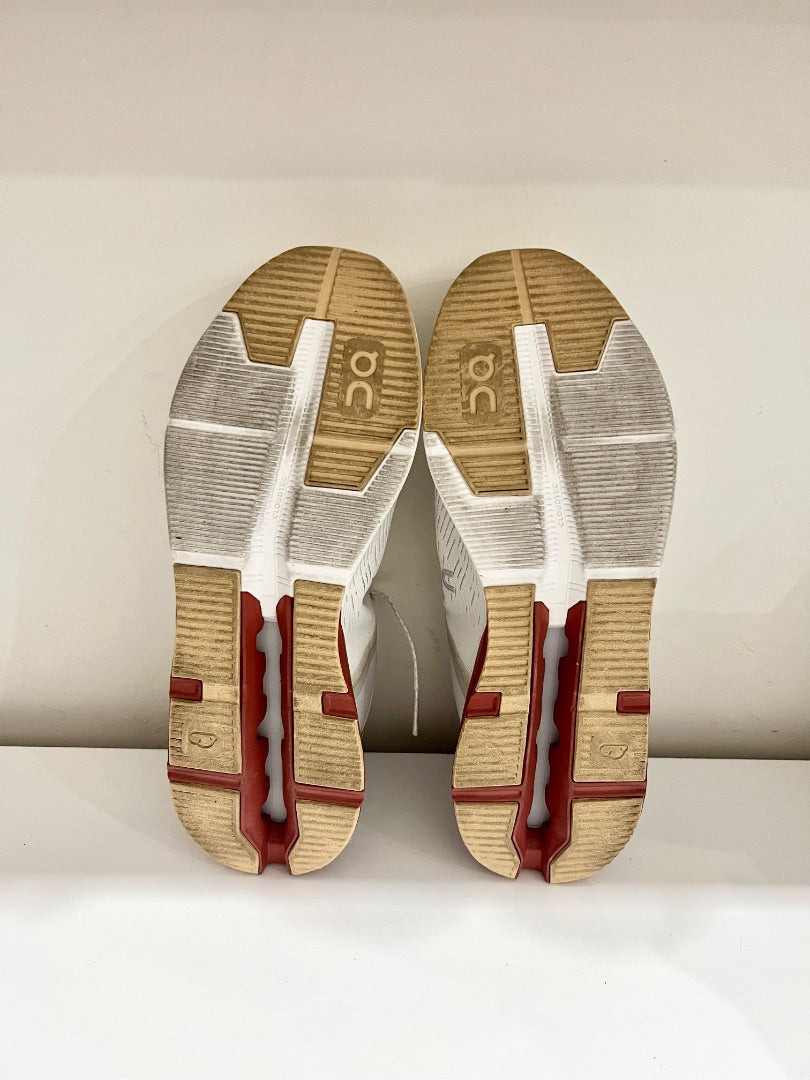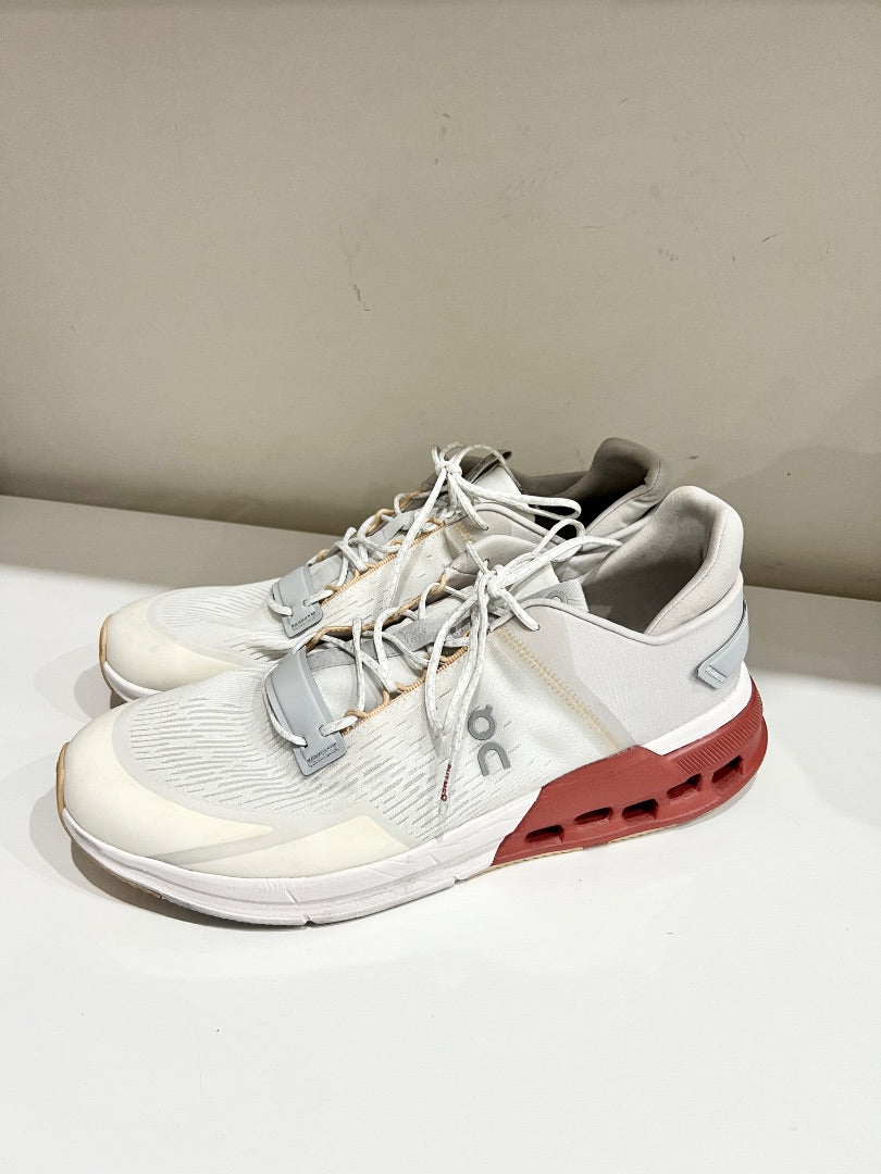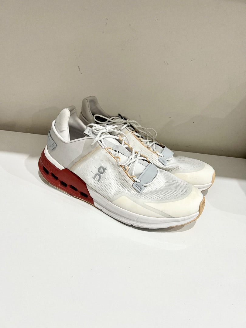 On Cloudnova Low Top Running Sneakers With Maroon Soles White Men's Size 12 M