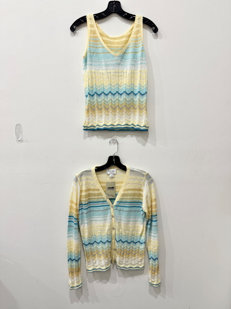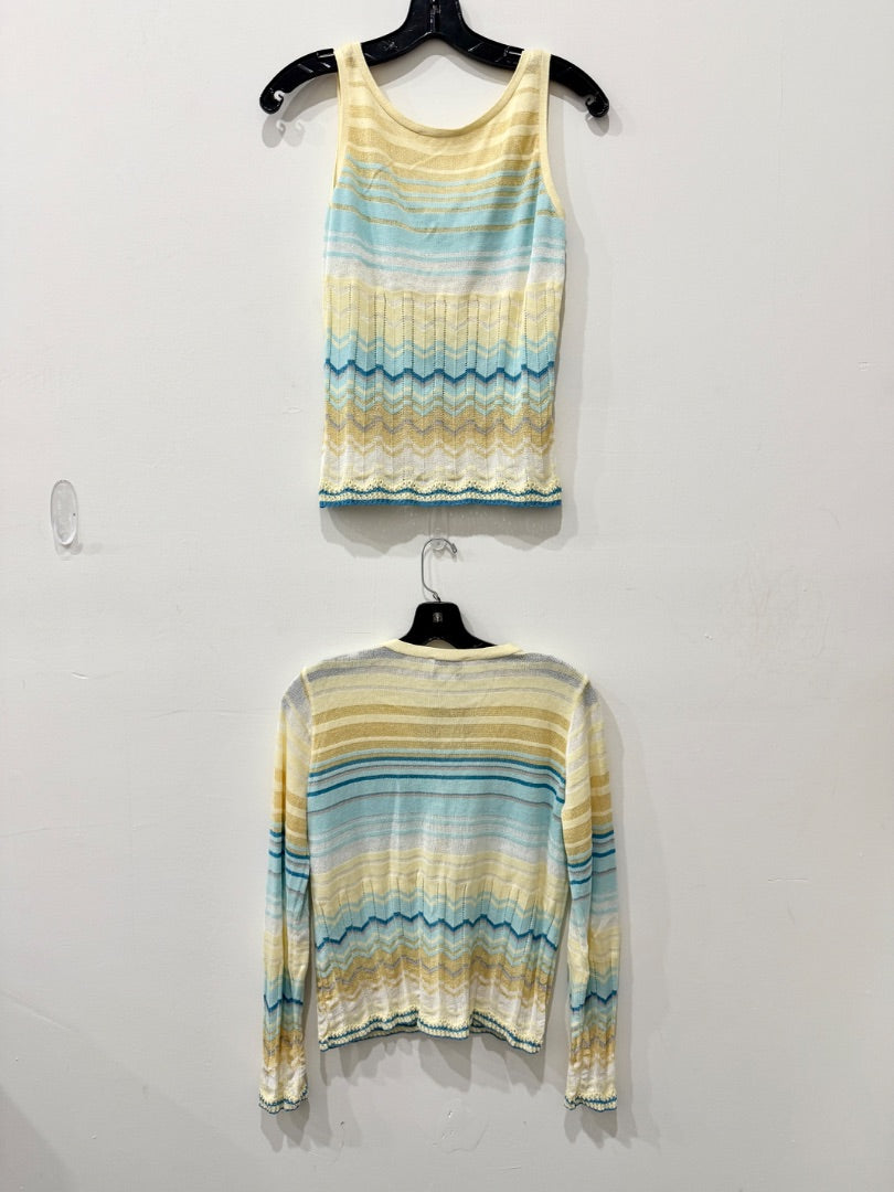 Oscar de la Renta Matching Set; Knit Cardigan and Tank Top Yellow/Blue Womens XS