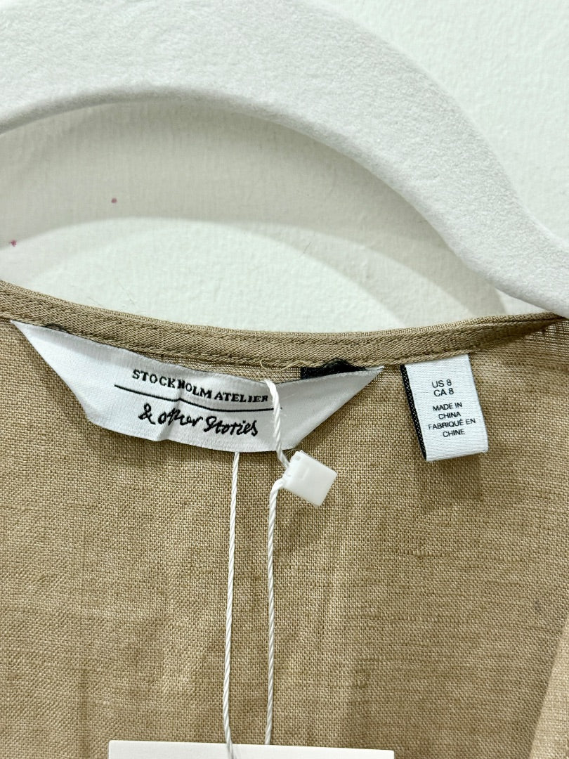 & other stories 100% Linen Short Sleeve Wrap Maxi Dress Beige Women's Size 8