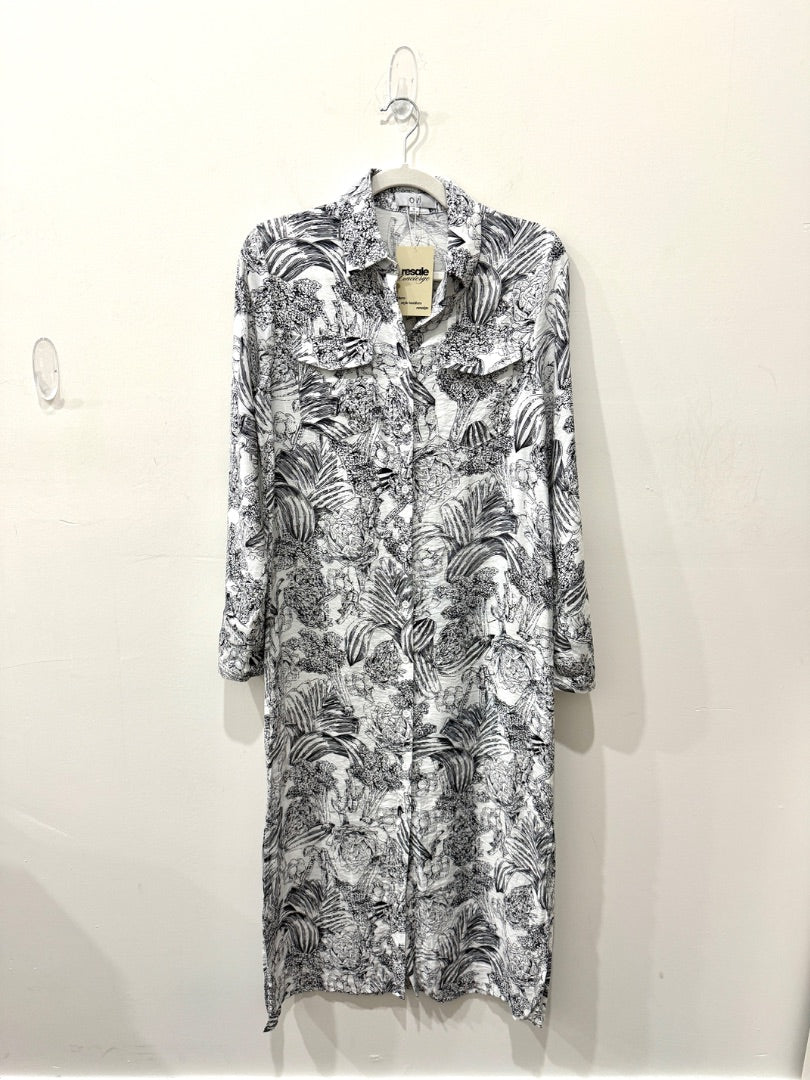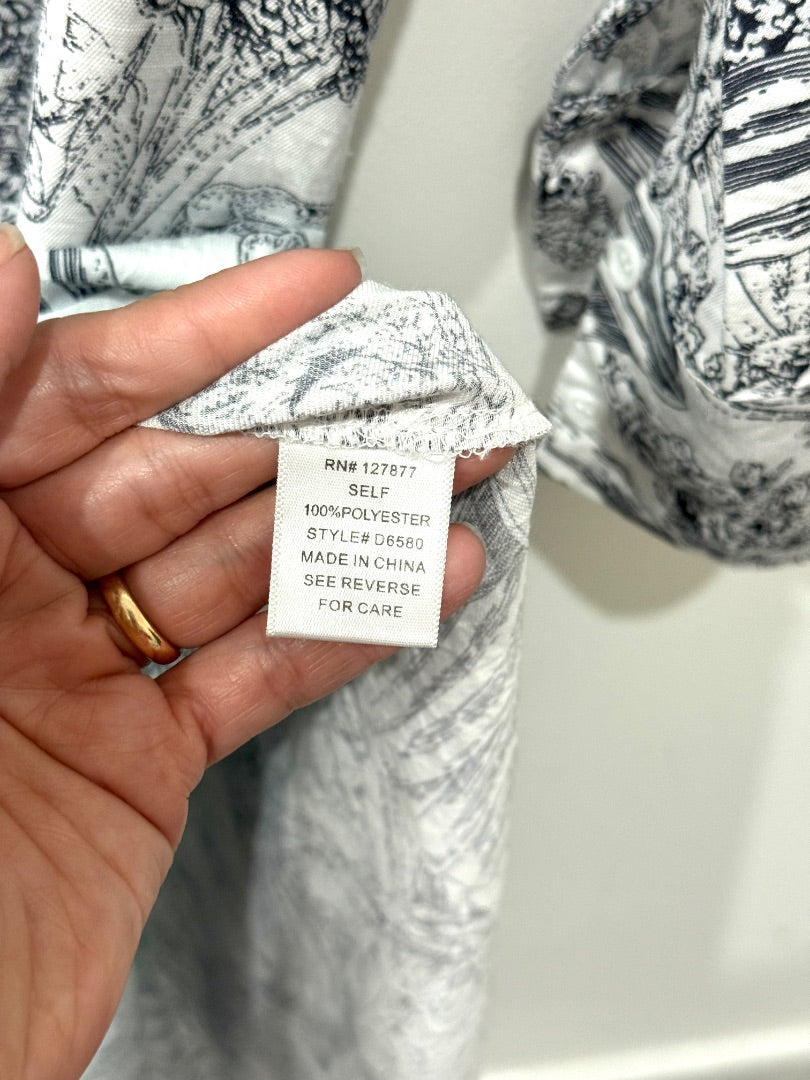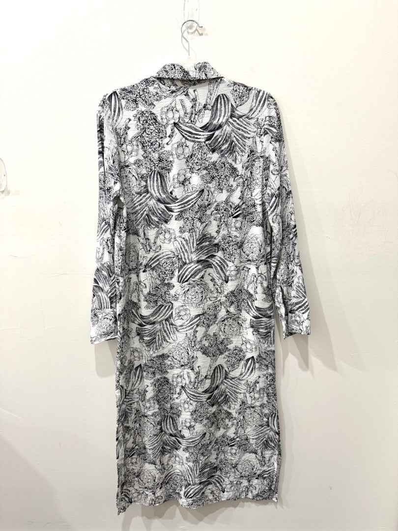 Ovi Floral Print Long Sleeve Midi Shirt Dress Cottagecore Gray Womens Size Small