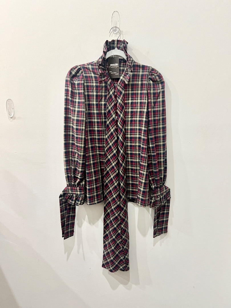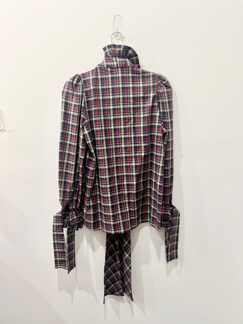Paris 64 Louise Check Long Sleeve Ruffle Shirt Red/Blue/Beige Women's Size Small