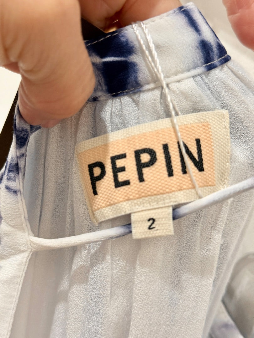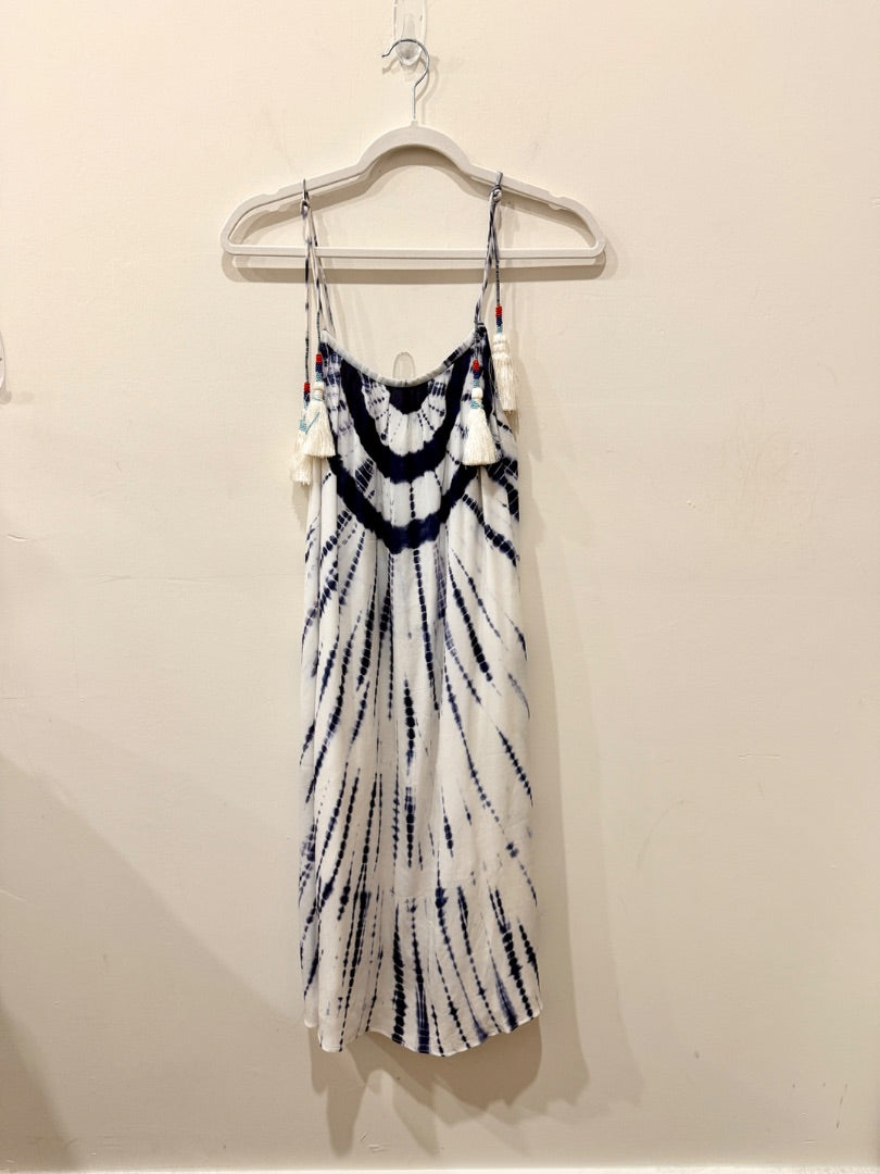 Pepin Tie Dye Sleeveless Midi Cover-Up Dress w/ Tassels White/Blue Women's 2 / M