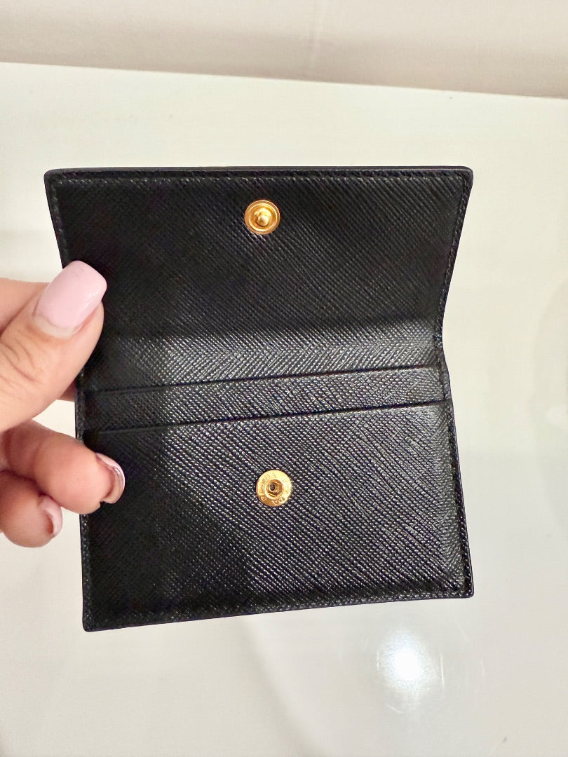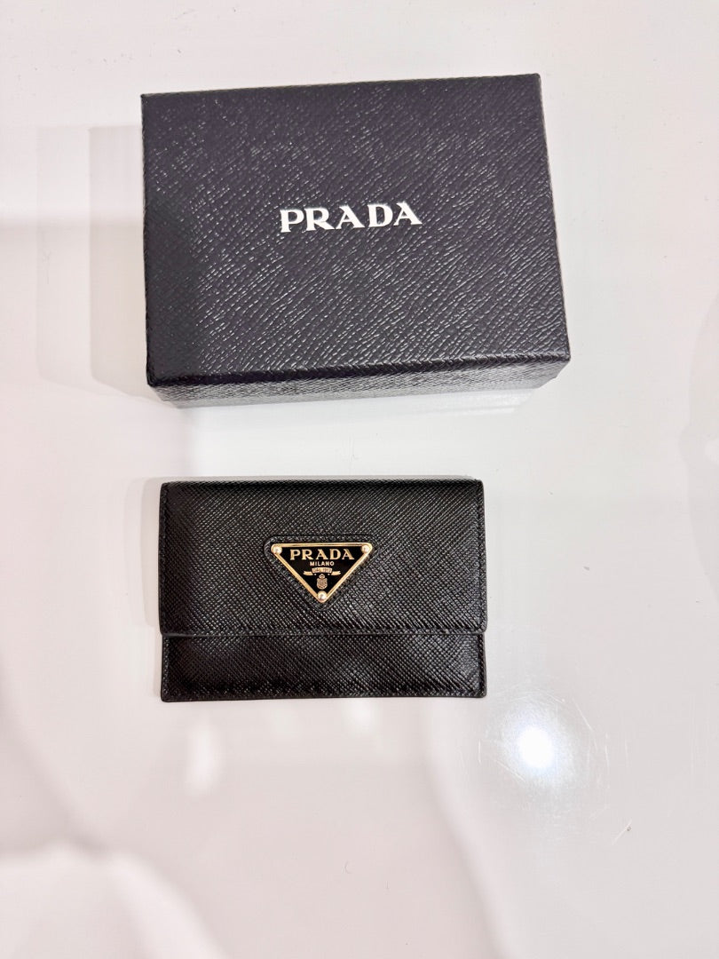 PRADA Flap Moiré Saffiano Leather Card Holder Black Unisex