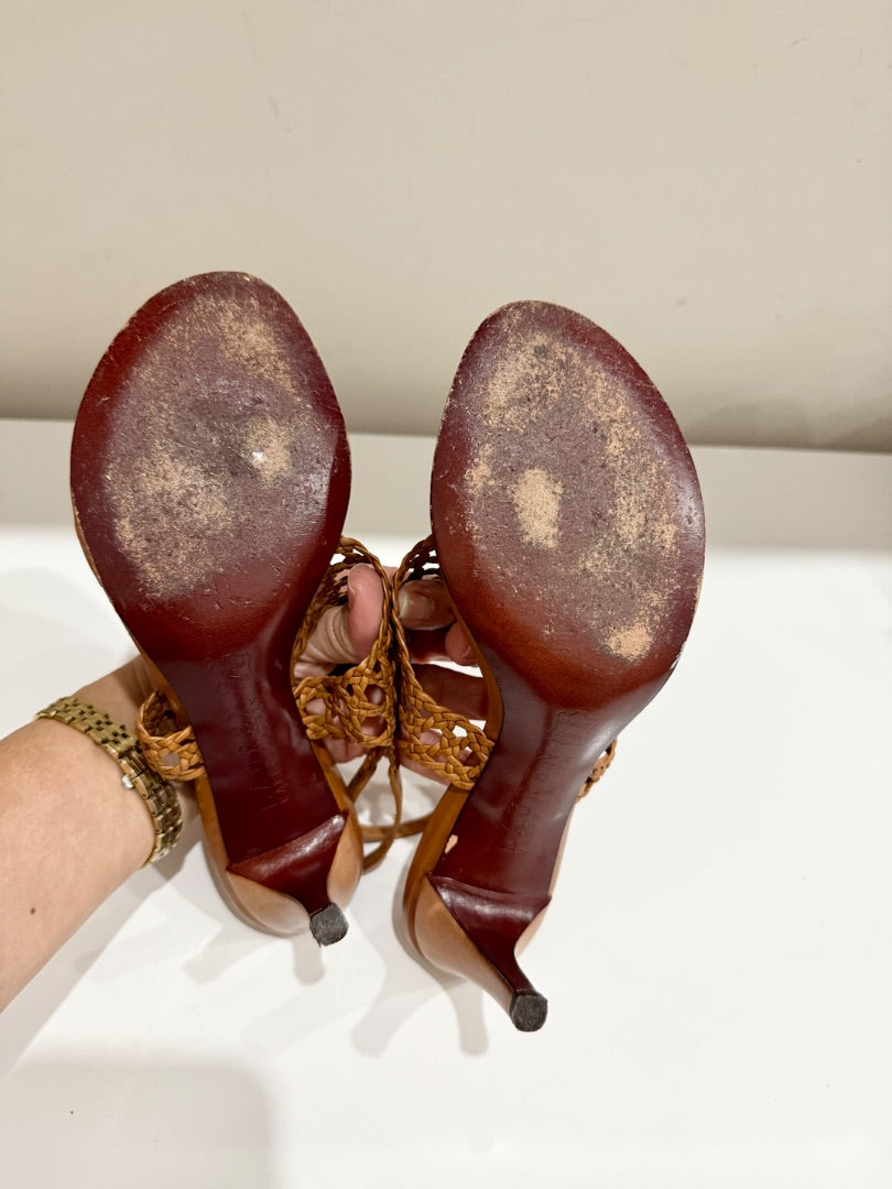 Ralph Lauren Leather Braided Slip On Thong Slingback Sandals Brown Womens Size 6