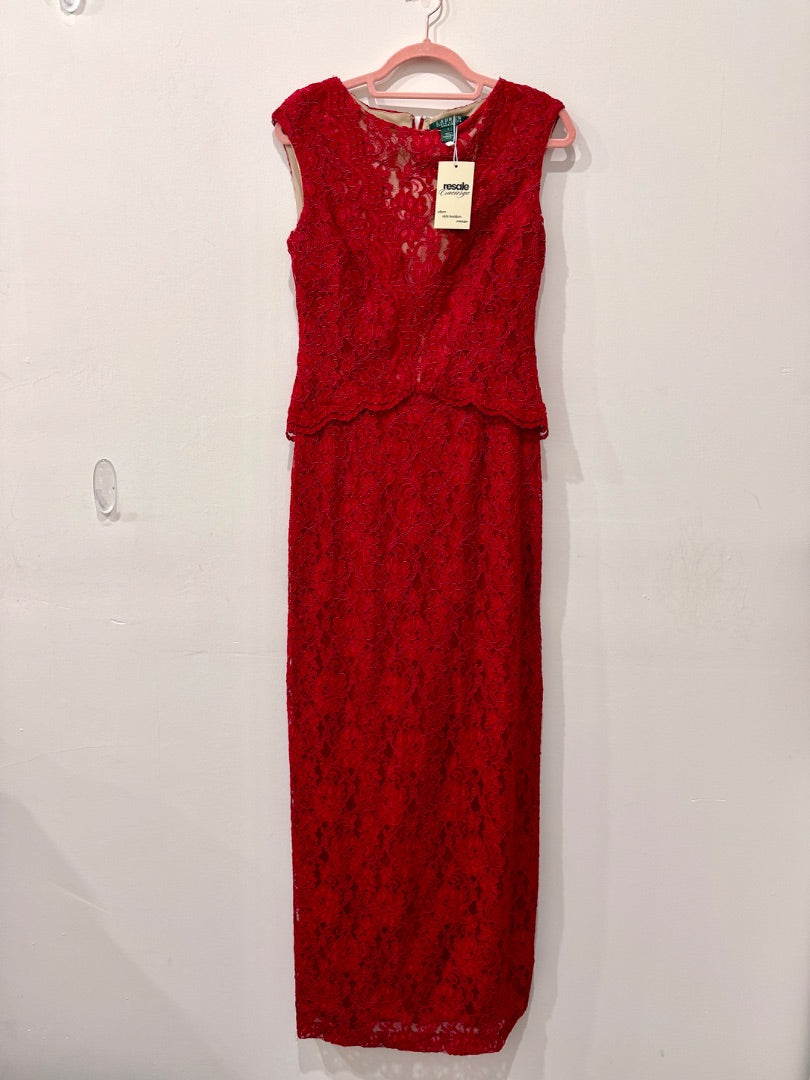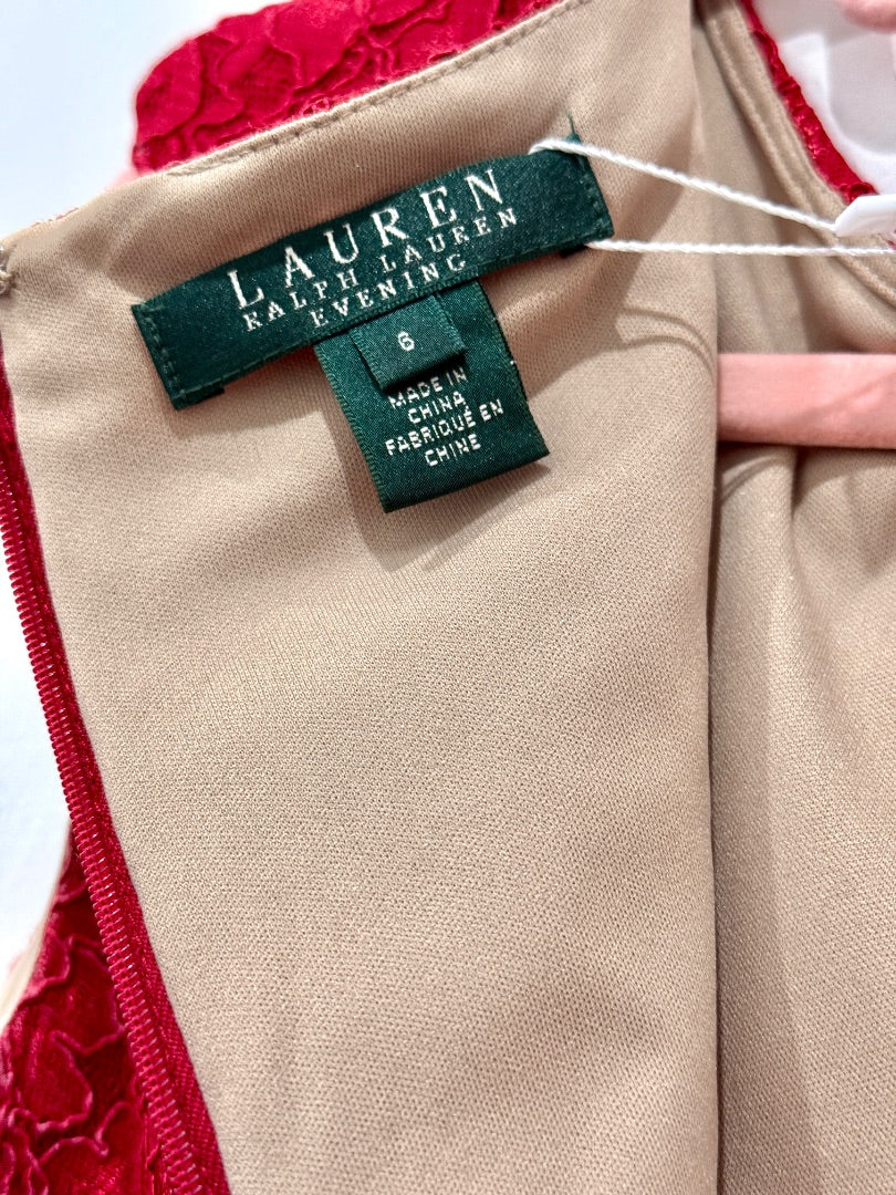 LAUREN Ralph Lauren Evening Lace Bodycon Ball Gown Maxi Dress Red Women's Size 6