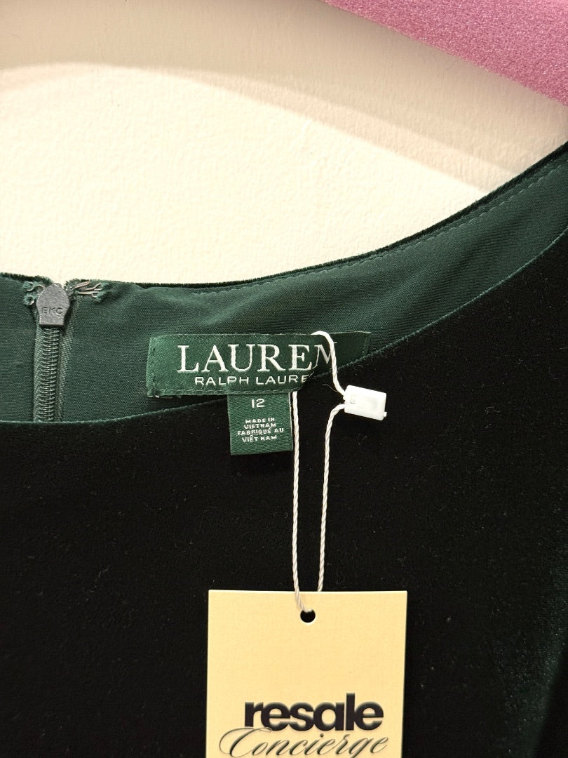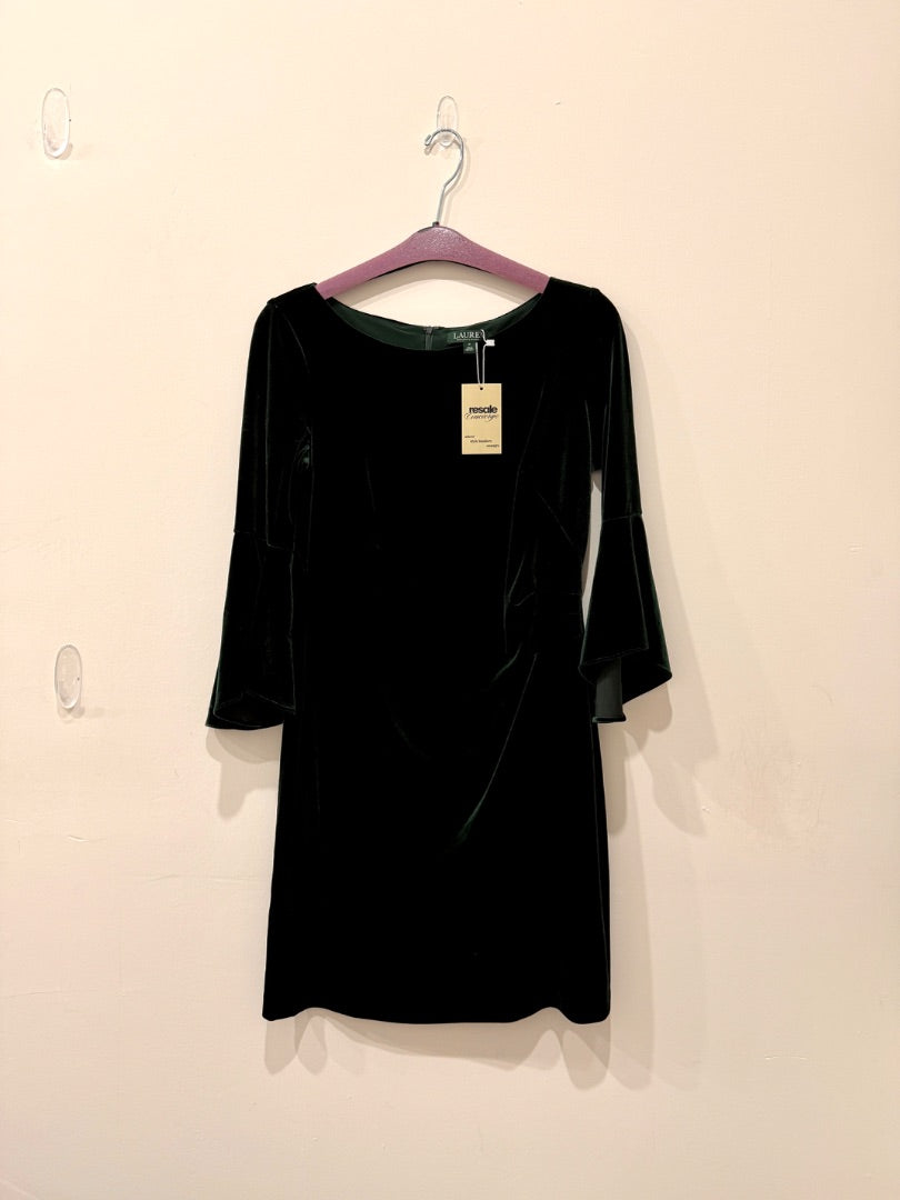 LAUREN Ralph Lauren Bell Sleeve Ruched Shift Velvet Midi Dress Moss Womens 12