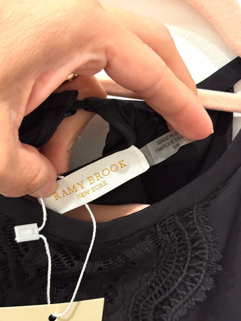 Ramy Brook New York Sleeveless Embroidered Silk Tank Top Black Women's Size S