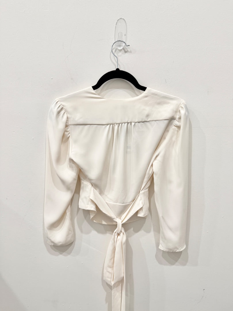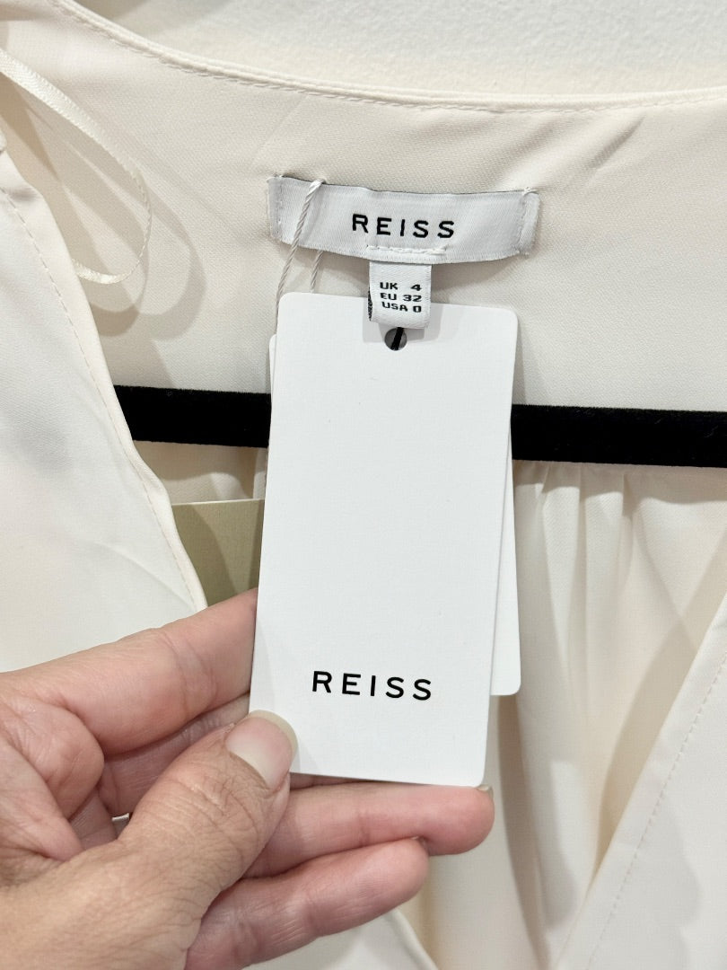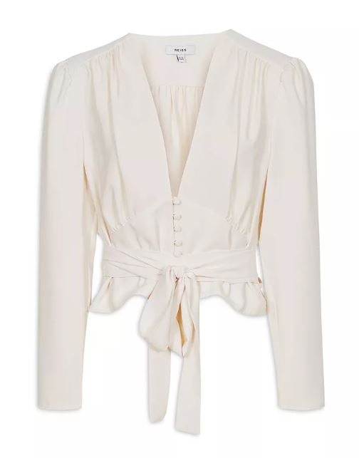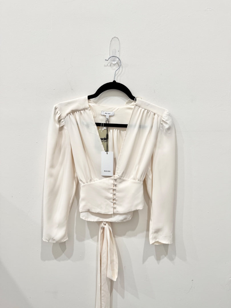 Reiss Alena Plunging V-Neck Button Front Cropped Blouse Ivory White Women's 0