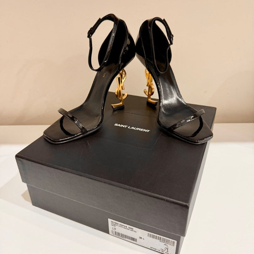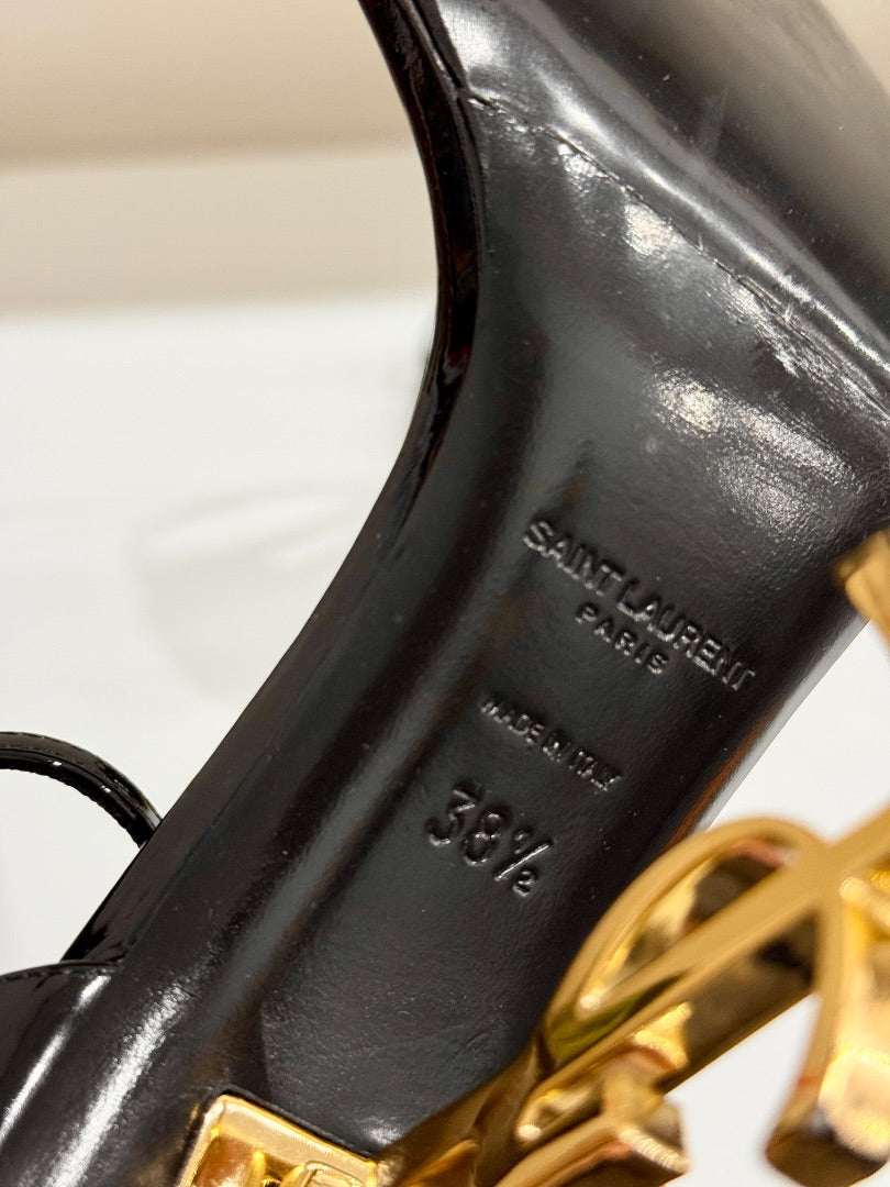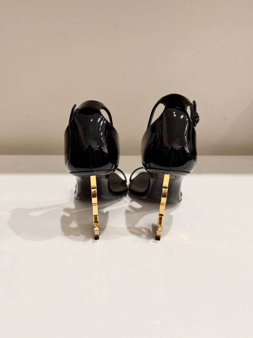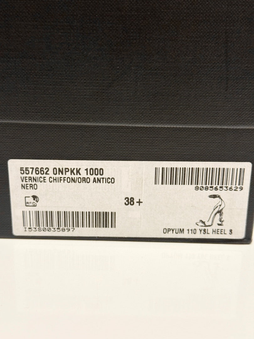 Saint Laurent Patent Vernice Opyum 110 Heel Sandals Chiffon/Oro Antico Nero 38.5